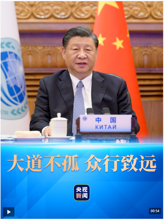 “大道不孤,众行致远。上海合作组织顺应当今时代潮流、契合人类进步方向,一定能够在我们的共同努力下不断发展壮大。”