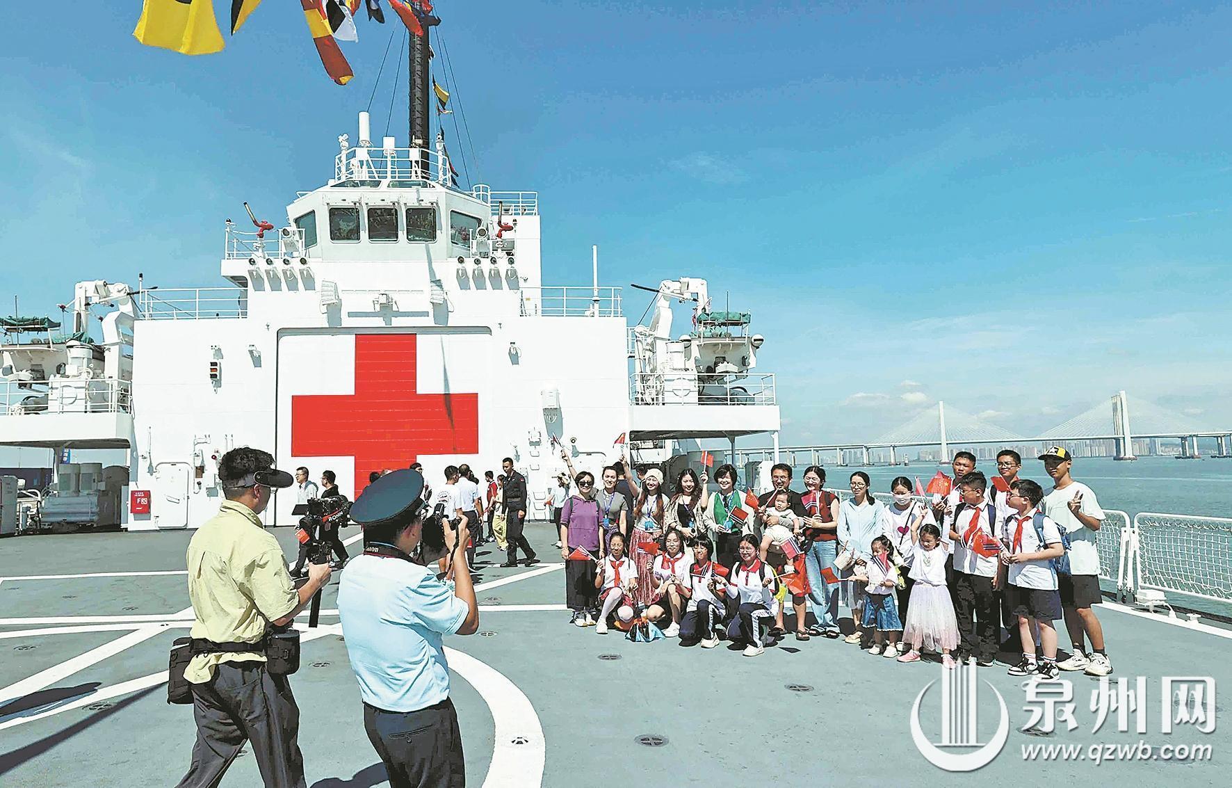 更让参与群众惊喜的是,当天他们还受邀参观海军“丝路方舟”号医院船。大家在海军官兵的带领下,有序参观医院船门诊区、甲板区等,近距离接触这艘被誉为“海上移动医院”的万吨级远洋医院船,领略我国海军发展壮大的伟大成就,增强国防意识和民族自豪感。“第一次这么近距离接触到这样的‘大国重器’,让我深感祖国越来越强大,我们一定要学好更多本领,长大后努力为祖国发展贡献力量!”东门实验小学六年级学生江柔参观后兴奋地说。