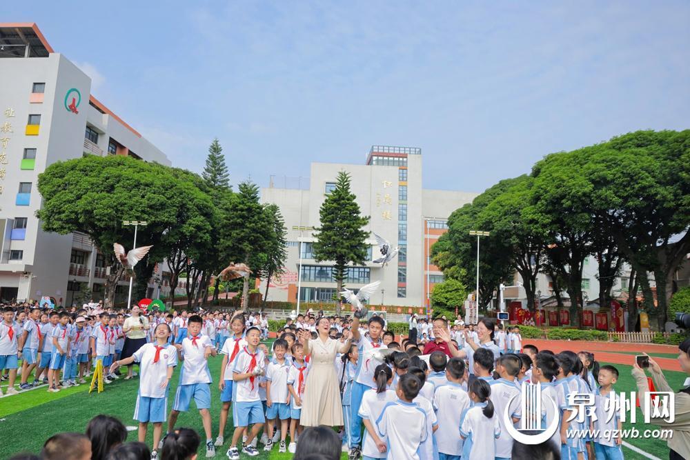 泉州市实验小学的老师与学生代表放飞和平鸽(泉州市实验小学 供图)