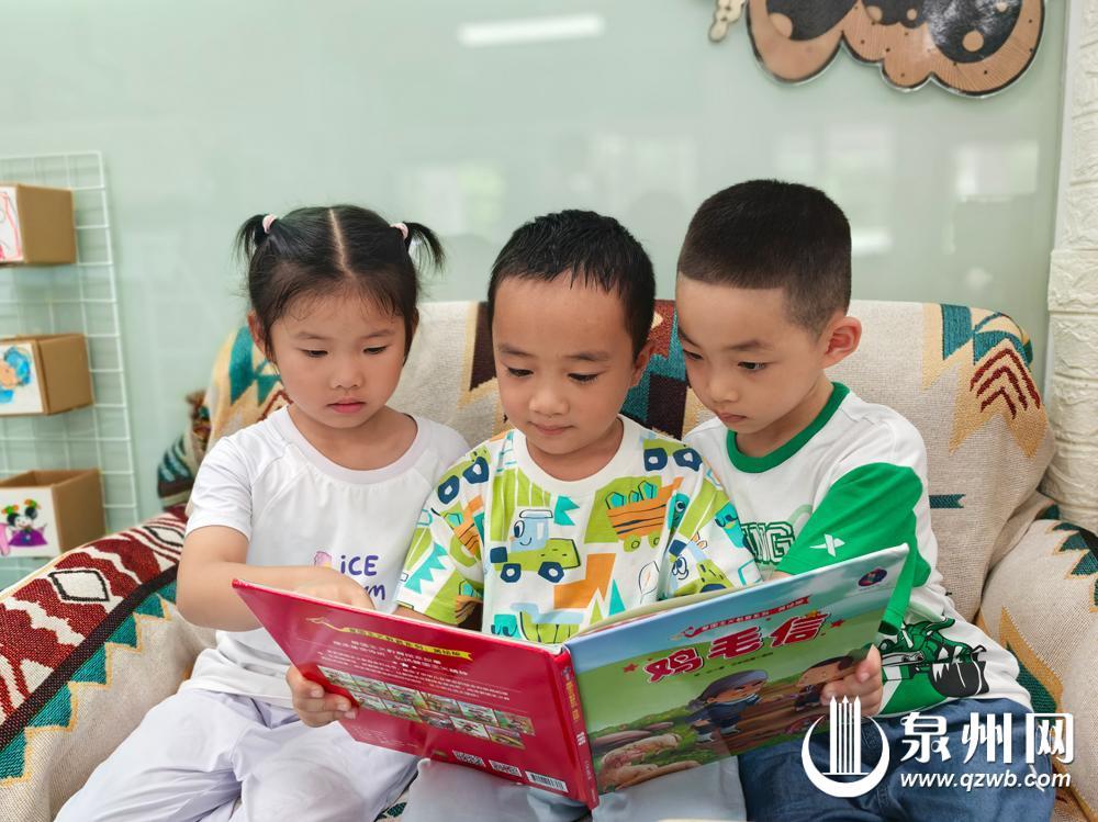 泉州幼师附属幼儿园的小朋友一起阅读经典抗战故事绘本(黄厦艺 摄)