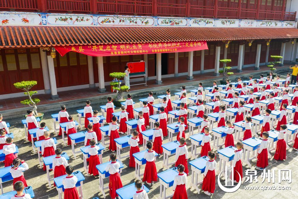 泉州网9月2日讯(融媒体记者张雯 郭芳蓉 通讯员颜彩虹 苏榆轴)新学期到来之际,永春县多所中小学校在多个书院同步开展“开笔启智 明礼立身”开学仪式。