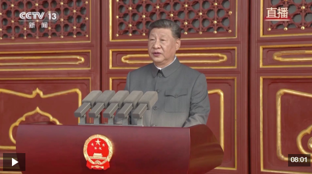 今天,我们隆重集会,纪念中国人民抗日战争暨世界反法西斯战争胜利80周年,共同铭记历史、缅怀先烈、珍爱和平、开创未来。