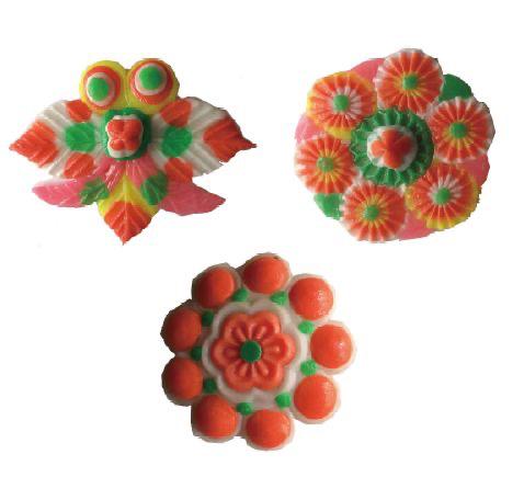20世纪50年代,塑料成为缀仔的主要原材料之一。塑料成本低又美观,深受惠安女青睐。心灵手巧的惠安女充分利用生活中的各种物品作为模具,如玻璃瓶、木雕等,将热熔的塑料在模具上印压成花,制作出各式各样的塑料缀仔。