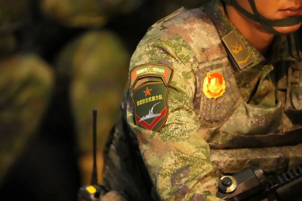 我的工作点位在长安路以北的装备集结区,与我搭档的是新华社记者林煜。在第三次演练的晚上,我俩发现路北侧人行道上集结了一支受阅队伍,他们年轻朝气富有活力,身形挺拔,阳刚帅气,臂章上写着舰载防空武器方队。
