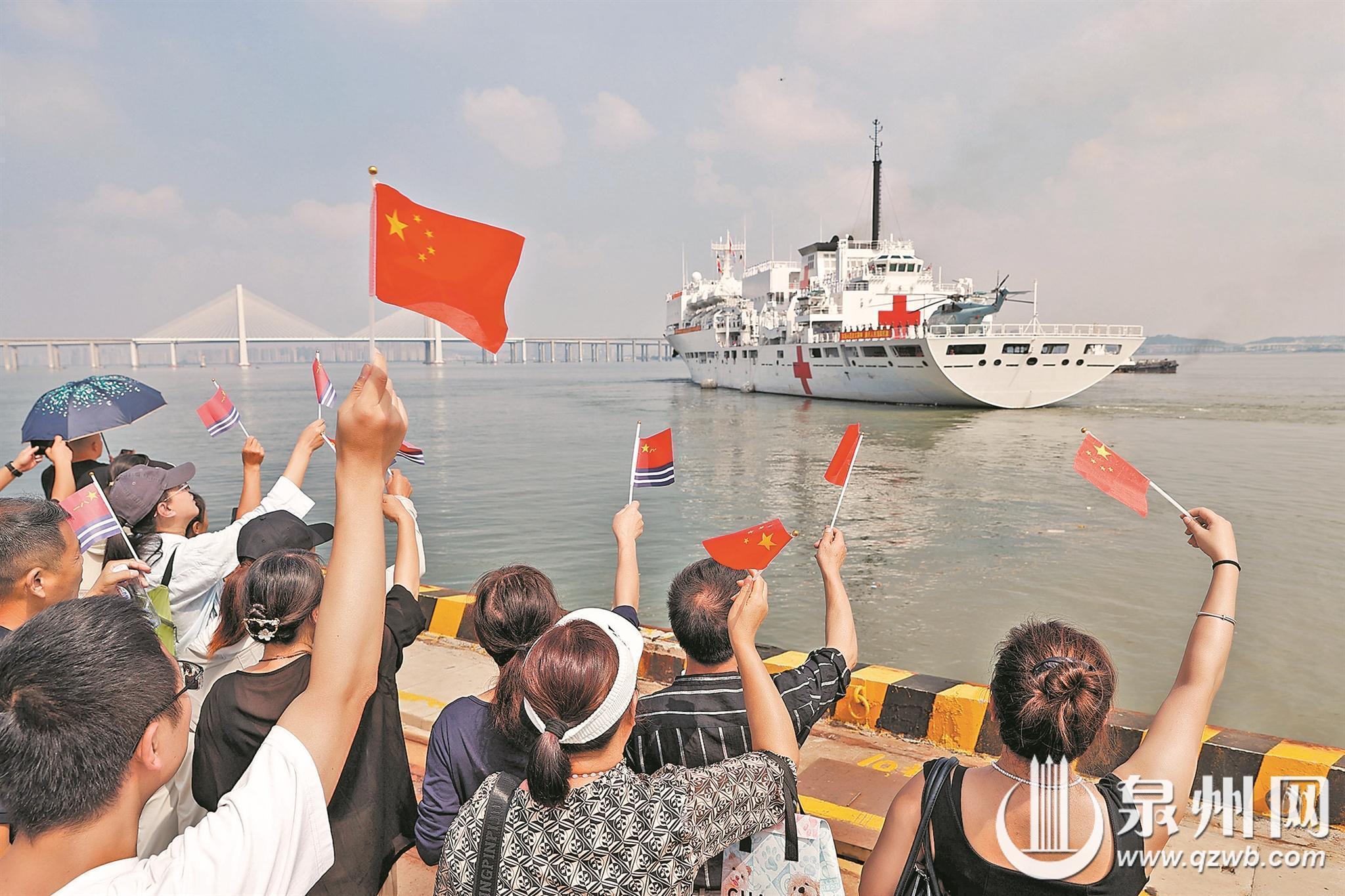 海风吹拂,汽笛声鸣。上午9时30分许,伴随着嘹亮的军乐声,军地领导、部分任务官兵家属及泉州各界群众代表齐聚码头共同欢送海军“丝路方舟”号医院船。各层甲板上,官兵们整齐列队挥手致意、深情道别。蔡战胜代表市委、市政府向肩负光荣使命、奔赴深蓝的海军官兵致以崇高敬意,向长期以来守护祖国海疆、支持地方发展的海军部队表示衷心感谢。他指出,泉州是“海上丝绸之路”起点城市,千年前无数船舶从这里出发,架起中外文化交流的桥梁;如今“丝路方舟”从泉州起航,以护佑生命、播撒大爱为己任,将再次为世界带去中国人民的友谊。从“通海互市”到“守望互助”,丝路航线从未改变连接世界的初衷,充分彰显了构建人类命运共同体的时代价值。