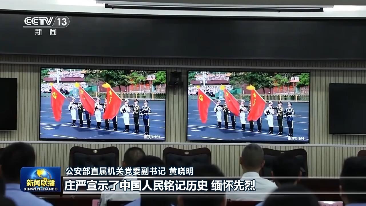 公安部直属机关党委副书记 黄晓明:习近平总书记在纪念大会上的重要讲话,庄严宣示了中国人民铭记历史、缅怀先烈、珍爱和平、开创未来的坚定立场,发出了捍卫国际公平正义的时代强音。我们将弘扬伟大抗战精神,持续提升公安机关新质战斗力,维护国家安全和社会稳定,守护人民幸福和安宁。