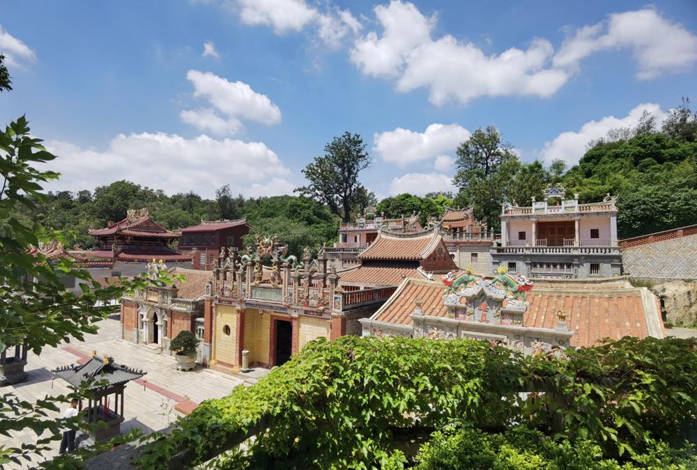 灵秀山不高,却是石狮的文化古迹胜地。山腰处屹立一古刹超千年,即为远近闻名的金相院,因山中“空兰奇香”异象而得名,现存建筑融合闽南传统风格与南洋元素,有红砖白石双坡曲,有出砖入石燕尾脊,有石基红木柱和斗拱支撑,有雕梁画栋榫卯框架,还有剪瓷雕和巴洛克式廊柱。整座寺院构思奇妙、精雕细琢,堪称精美绝伦。