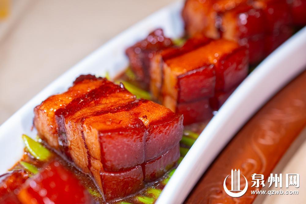 红烧肉浓郁的红在白玉般的瓷盘映衬下,愈发醇厚诱人。