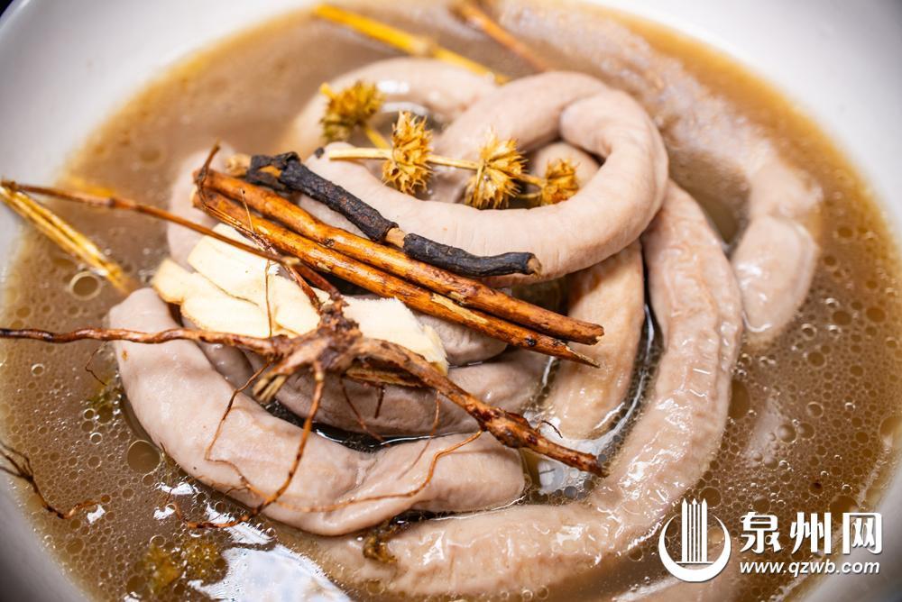 过饥草汤是德化民间传承千年的养胃药膳。相传,北宋年间“窑神”林炳,在研制窑炉时,困了就在窑旁打个盹,三餐更是随便吃,造成肠胃紊乱,遂多方寻药。后经老药师指点,用几味草药与猪骨合炖,熬成“过饥草汤”,林炳饮后症状消失,饮食恢复。德化人炖汤时,会加入过饥草,熬制出来的汤水清香可口。对于食欲缺乏、肠胃不好的人群,过饥草可以促进消化,健胃养生。