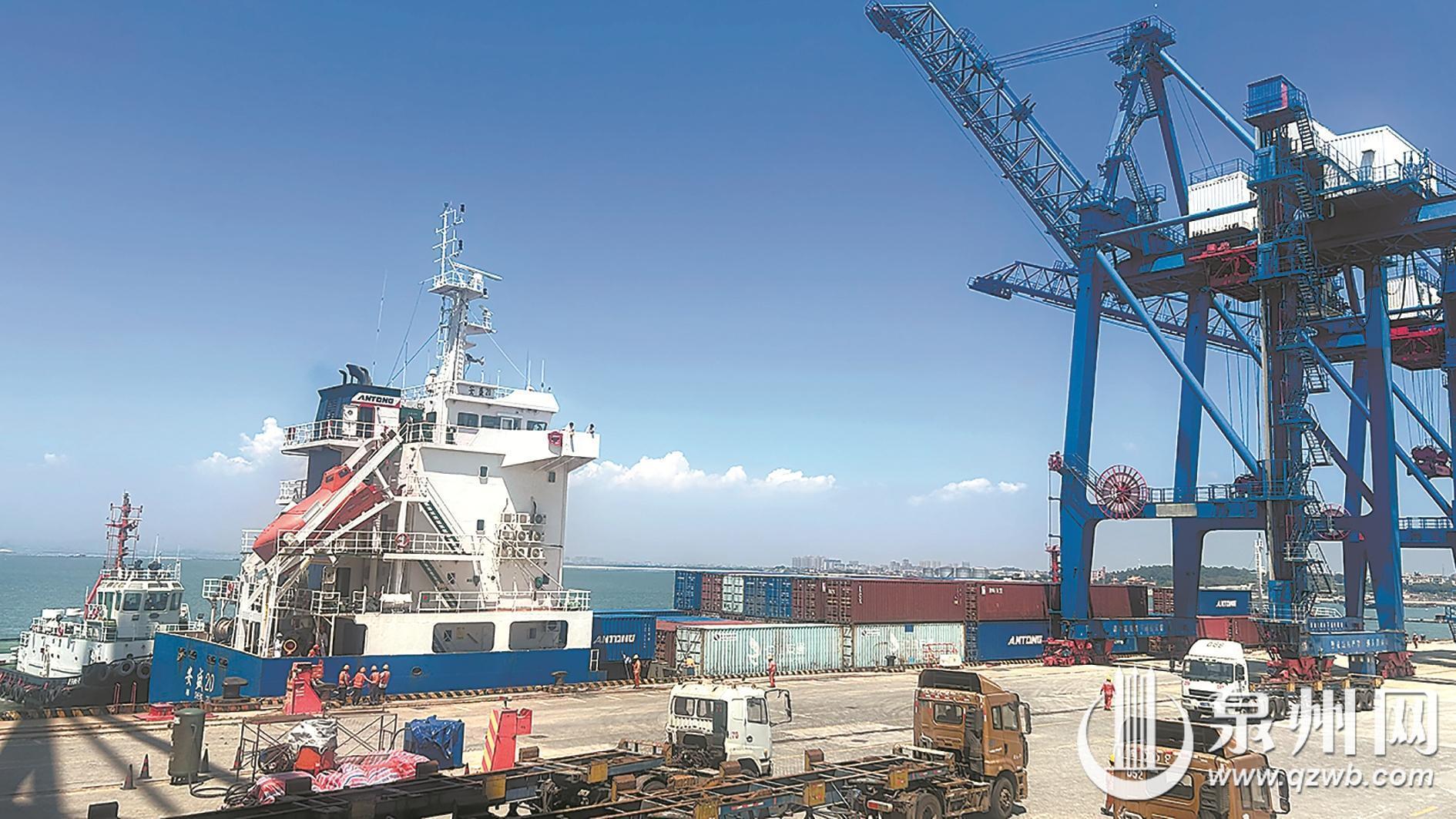 9月12日下午3时许,装载大米、尼龙切片等货物集装箱的“安盛20”轮顺利靠泊泉州港围头湾港区,标志着该港区成功开通“上海—围头—广澳—上海”内贸集装箱新航线。