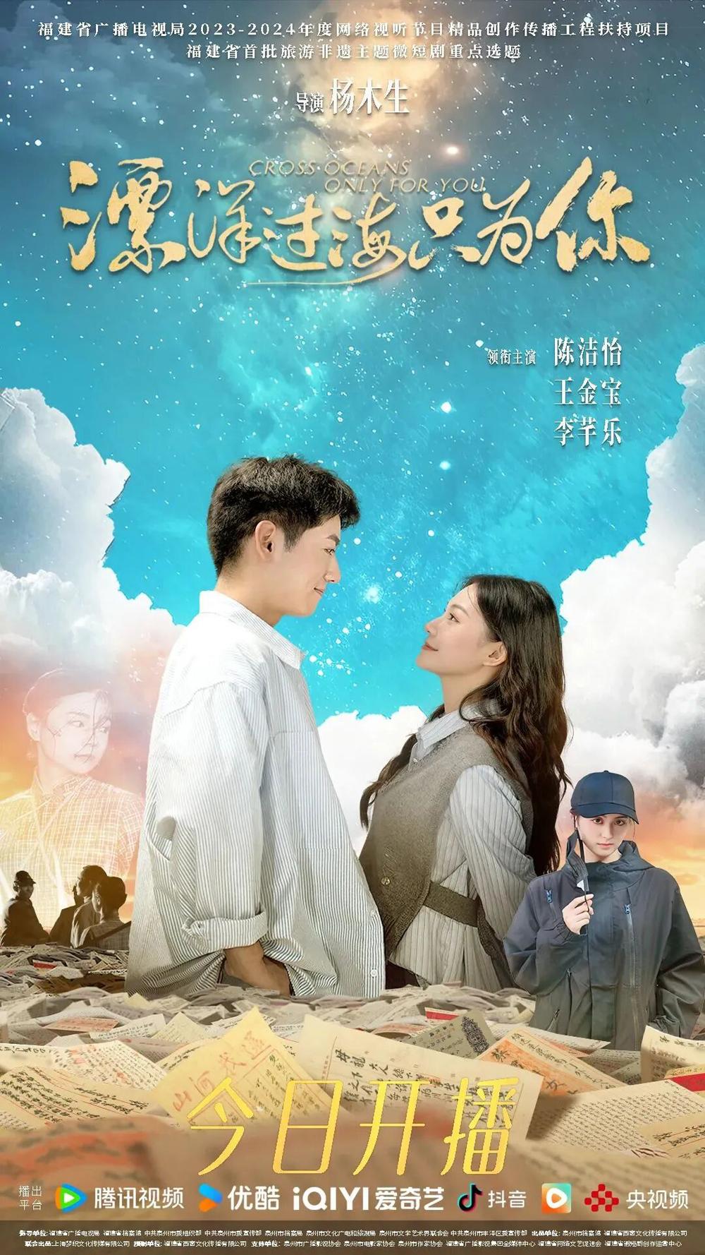 《漂洋过海只为你》取景地为泉州市的中山路、东西塔、蟳埔村、五里古街、东关桥、玉沙湾、晋江九十九间等特色场景,讲述了一对华侨青年陈鸿雁与李信联手解密几十年前爱国华侨支援祖国抗战的侨批往事,展现了海上丝绸之路起点、著名侨乡泉州的文旅魅力与鲜活侨史,以及主人公甜蜜浪漫的爱情故事。