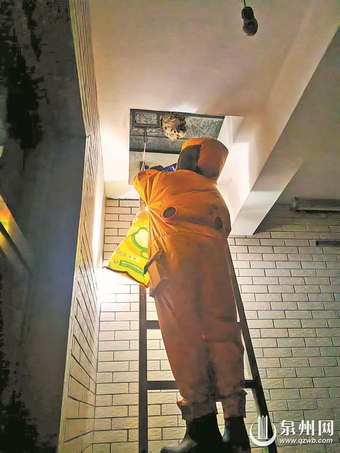 泉州网9月18日讯 (融媒体记者张雯 通讯员詹惠阳 文/图)夏末初秋,泉州依然高温不退,马蜂也进入活动与繁殖扩巢的高峰期。记者从泉港区星空应急救援中心获悉,9月上半月,该中心累计处置马蜂窝76起,最高峰时曾在一天内接到求助电话近20通,当晚处置23处马蜂窝。