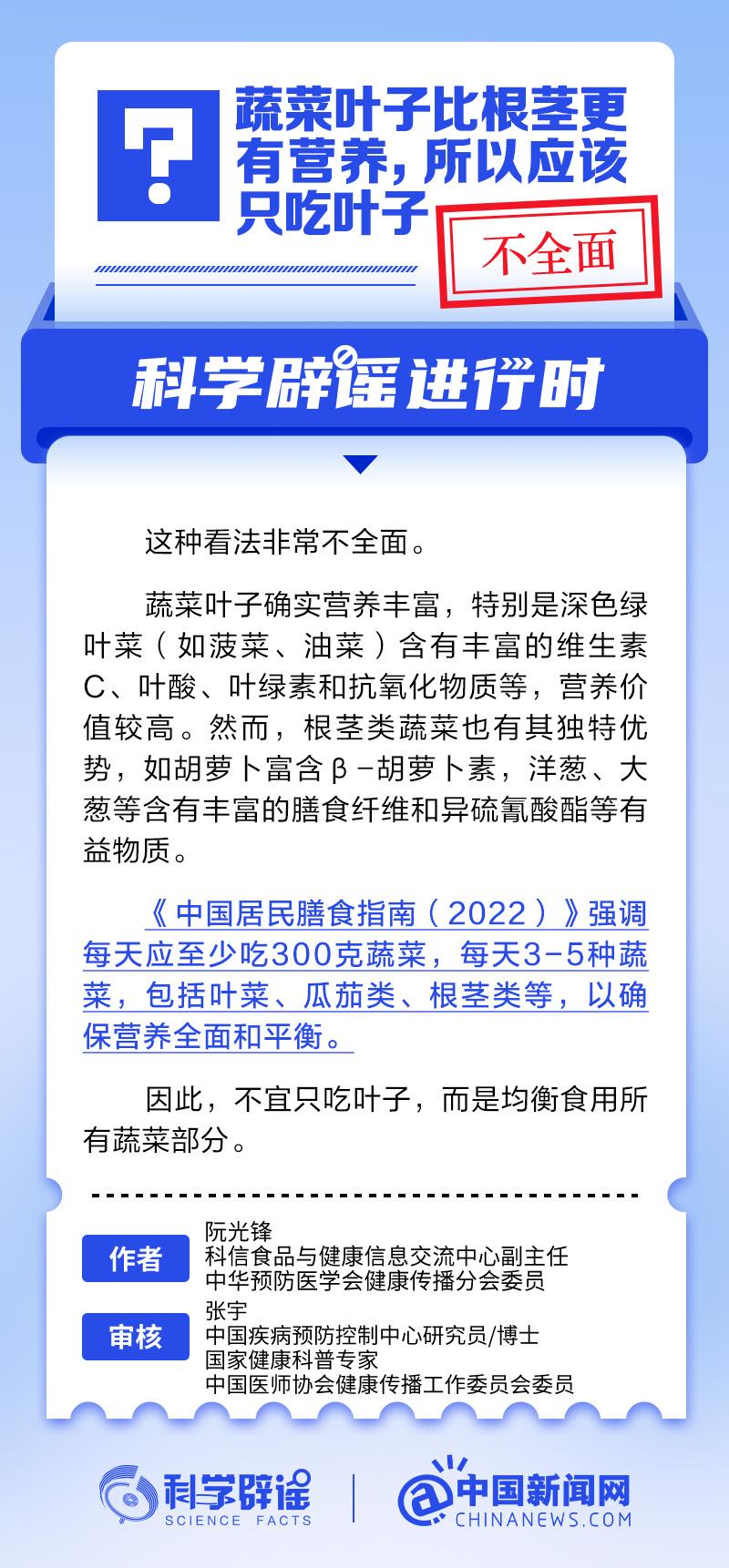 中新网9月18日电 蔬菜叶子确实营养丰富,特别是深色绿叶菜(如菠菜、油菜)含有丰富的维生素C、叶酸、叶绿素和抗氧化物质等,营养价值较高。但根茎类蔬菜也有其独特优势,如胡萝卜富含β-胡萝卜素,洋葱、大葱等含有丰富的膳食纤维和异硫氰酸酯等有益物质。(来源:@科学辟谣 中国新闻网微博 )