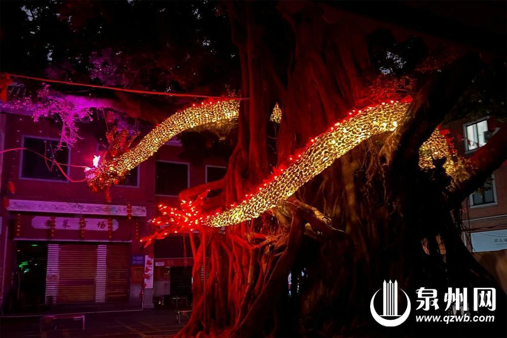 去年是龙年,上元佳节,环保装置艺术工作者宝小格在泉州西街老菜市场的百年榕树上创作龙灯《红羽礁龙》。作品以闽南人最熟悉的红砖瓦和海蛎壳为主要材料,“红羽”便是利用闽南红砖古厝的建筑废料组成龙的须发和羽翼;而“礁龙”则是运用菜市场搜集来的蚝壳,组成坚实且灵动的龙鳞,作者以此体现“废物利用、环保再生”的创作理念,内置发光装置的龙灯在夜色下别有一番景致。