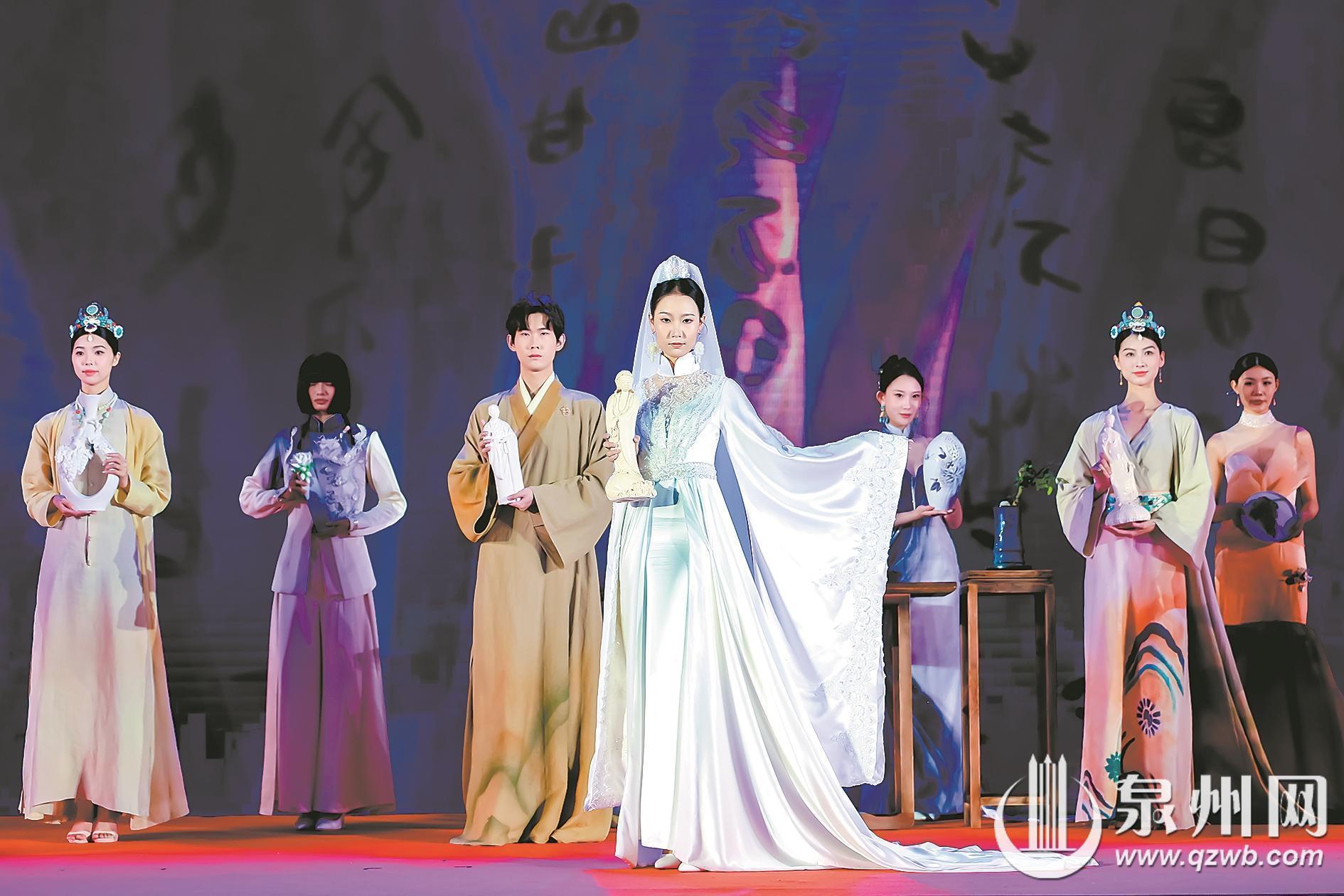 泉州网9月22日讯(融媒体记者 陈小芬 庄丽祥 通讯员 林婉清 文/图)9月19日,德化会展中心内,瓷元素服饰与陶瓷艺术品在T台上碰撞出别样火花,一场以“瓷韵·新生”为主题的海丝文化时装秀拉开了2025德化国际陶瓷文化周(以下简称“陶瓷周”)帷幕。本届陶瓷周以“中国白 向世界”为主题,通过时装秀、数字互动、艺术展览等系列活动,尽显“世界陶瓷之都”的传统底蕴与创新活力。