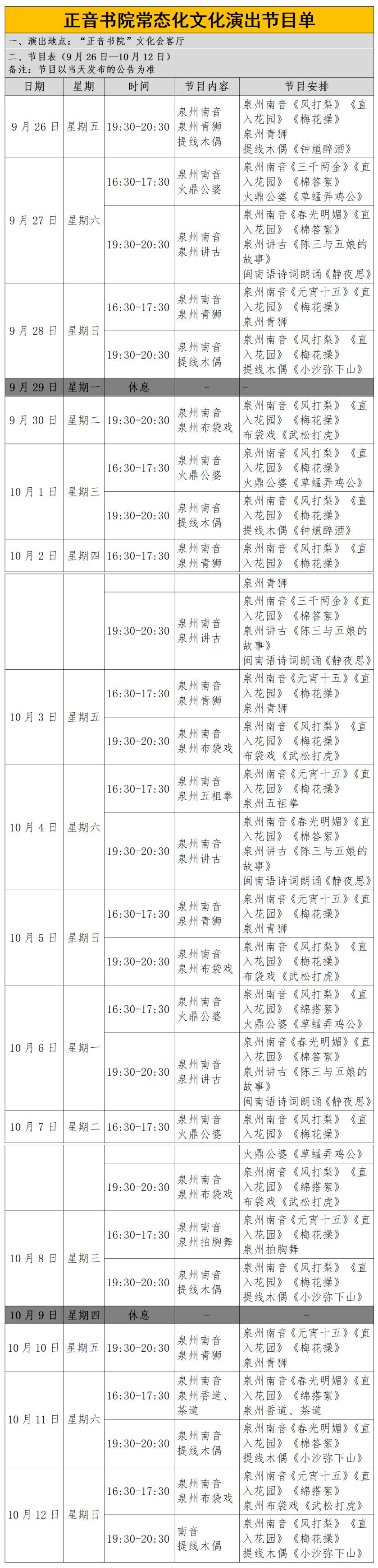 9月26日起,正音书院文化会客厅即将开启焕新升级后的首次非遗展演,涵盖泉州南音、泉州布袋戏、泉州讲古、泉州青狮以及泉州提线木偶等多项演出内容,国庆中秋假期期间,展演不间断,扫描下方二维码,即可预约报名。