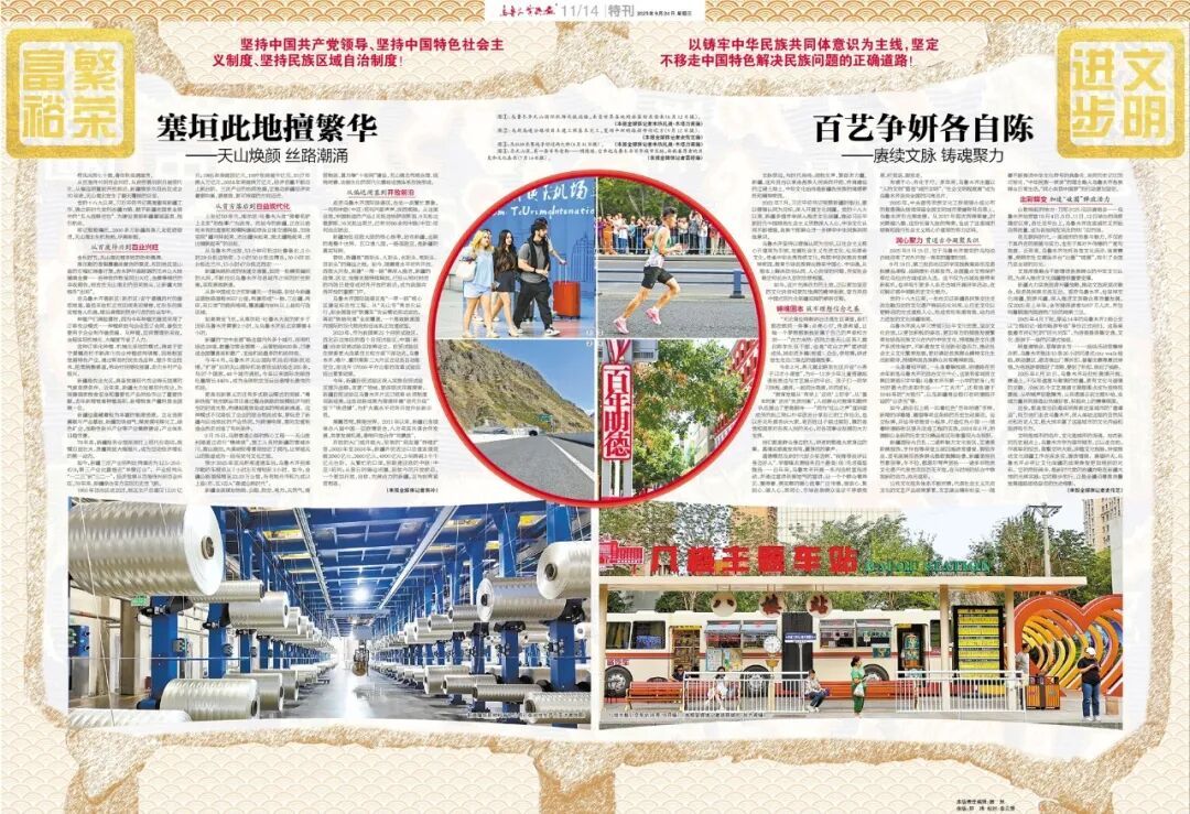 9月24日,在热烈庆祝新疆维吾尔自治区成立70周年之际,乌鲁木齐晚报推出特刊《五星出东方 光辉耀天山》,用镜头和笔触记录自治区成立70年来,特别是党的十八大以来,在以习近平同志为核心的党中央坚强领导下,在新时代党的治疆方略的科学指引下,乌鲁木齐经济社会发展和民生改善取得的成就,让我们一起和读者回望这幅波澜壮阔的发展画卷。
