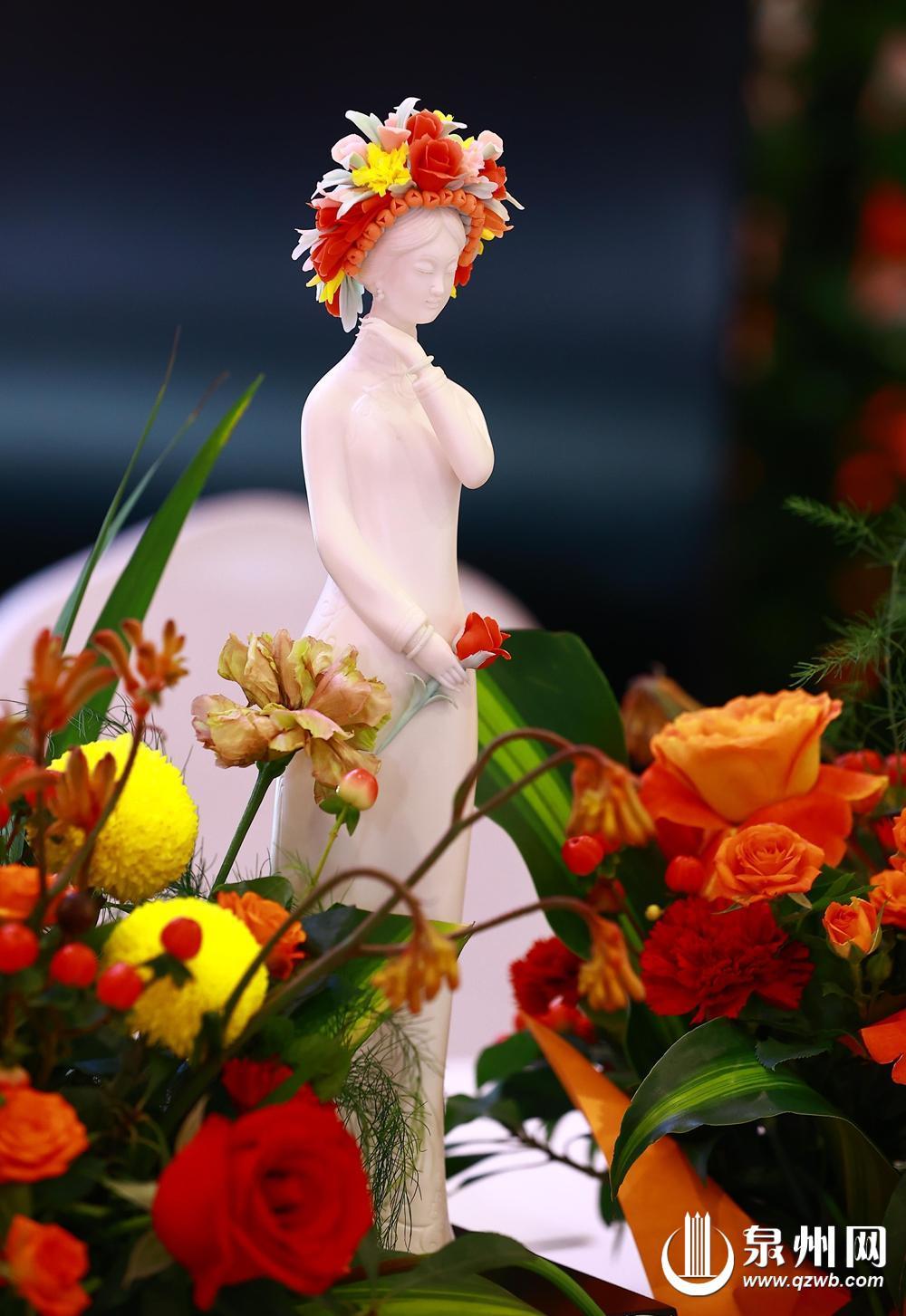 曾巧霞还将地域文化元素融入作品中。她以福建省的省花水仙、泉州市的市花刺桐花,以及近两年来火爆全网的蟳埔簪花围为灵感,设计出兼具地域特色与时尚感的首饰。“我们可以结合当下热点文化,或者全国乃至全世界的地域文化来设计作品,让更多人通过这种方式认识德化白瓷。”她说。