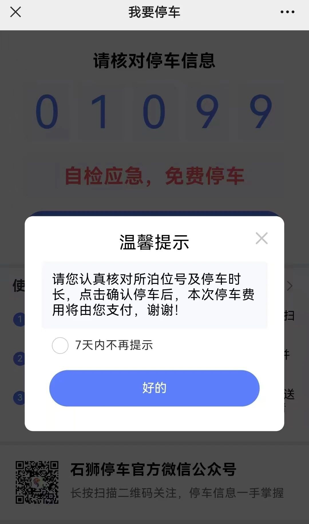 “石狮智慧停车”也温馨提醒各位车主,采取扫码停车时,系统会自动弹出所在泊位号信息并提醒大家核对,这时候请车主认真进行核对;如果是手动输入泊位号的,更要注意看清楚再点击确认。因为,输错泊位号或扫错其他泊位号,系统无法给予退款。