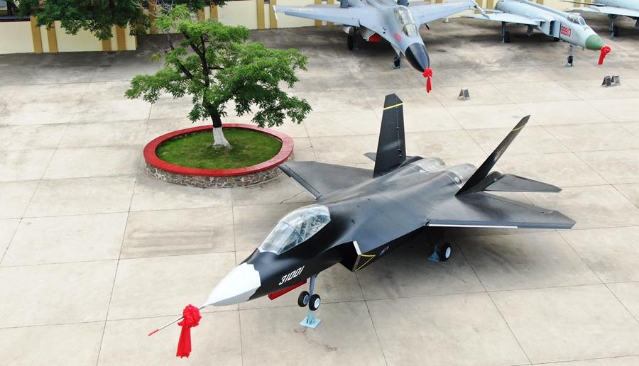这是2021年6月24日在航空工业沈飞航空博览园拍摄的“鹘鹰”战机(无人机照片)。新华社记者 杨青 摄