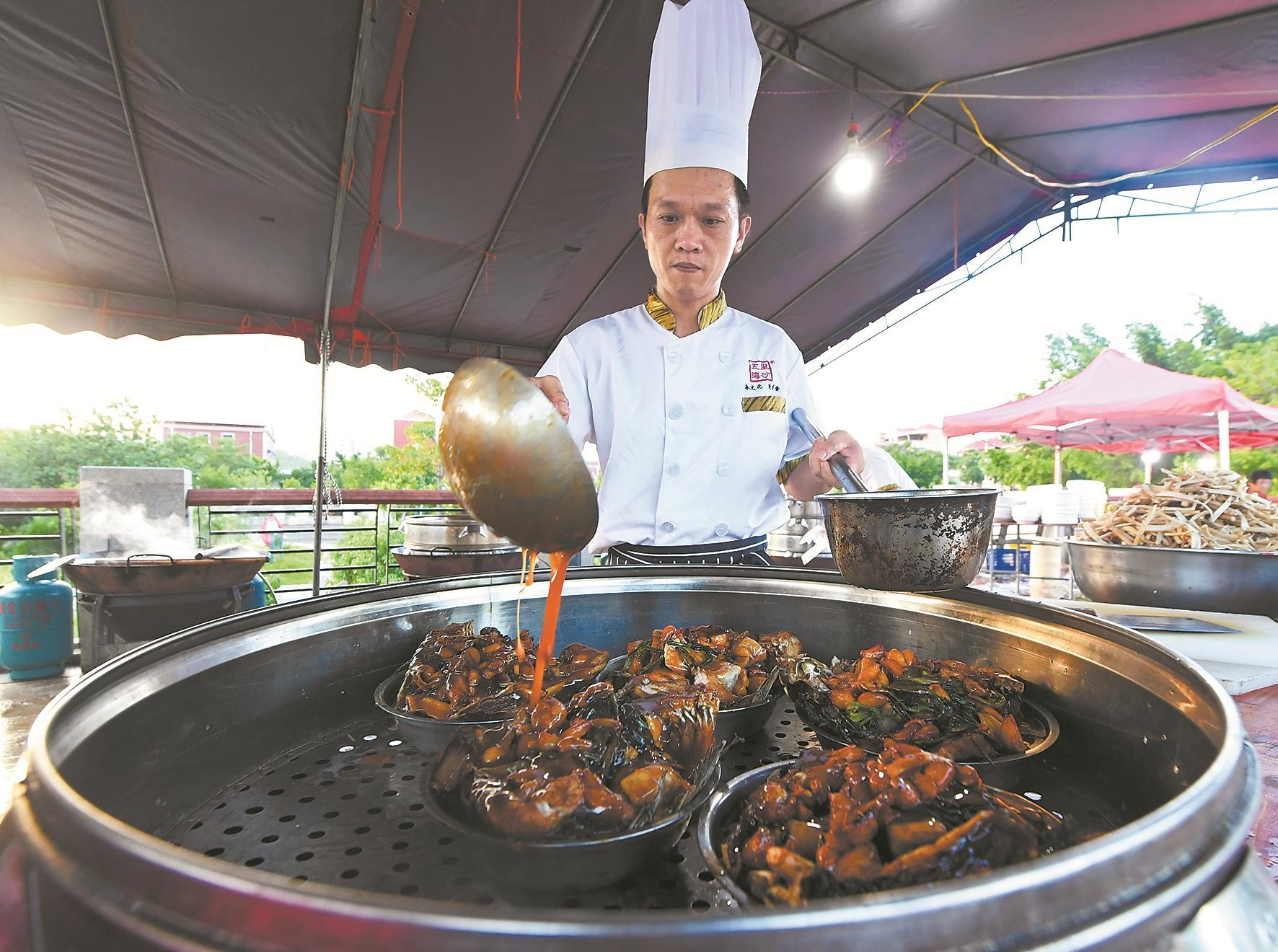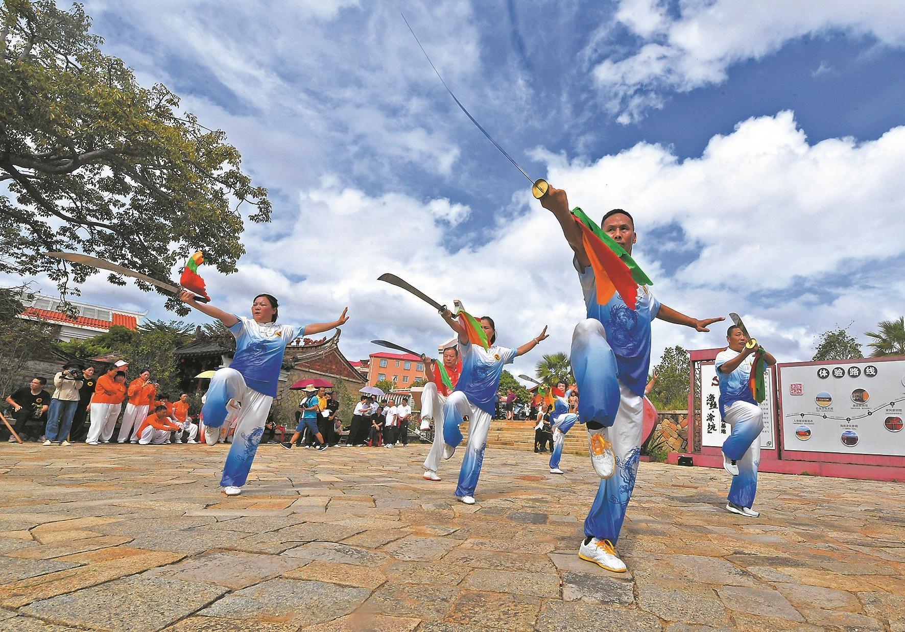 不仅有美景,在这里,味觉与文化的碰撞同样动人。系列活动中,海丝囍市·闽南婚宴美食趴,由乡厨现场烹饪泉港寿宴传统菜肴,餐桌设计融入家训食礼,让游客在品尝美食的同时,感受家训文化的熏陶;开展武术大家练,通过结合刘百万与武术的故事,展现中华武术的刚健之美和文化底蕴。