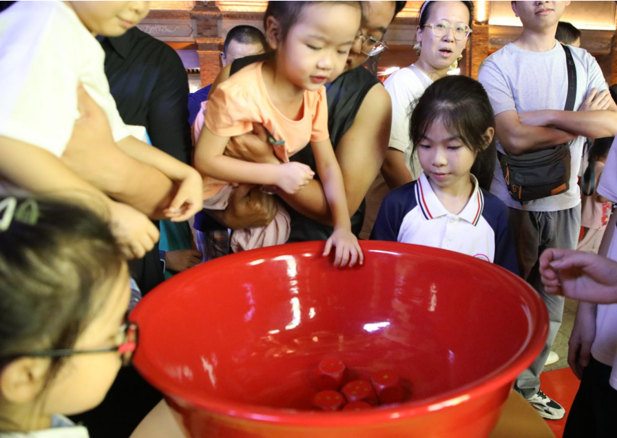 当晚,“聚宝杯”万人博饼大赛“千进百”选拔赛正式拉开帷幕,现场气氛热烈。选手们围桌掷骰,清脆的骰子声此起彼伏,欢呼与喝彩不绝于耳,市民游客共同沉浸在博饼这一闽南传统活动的独特乐趣中。