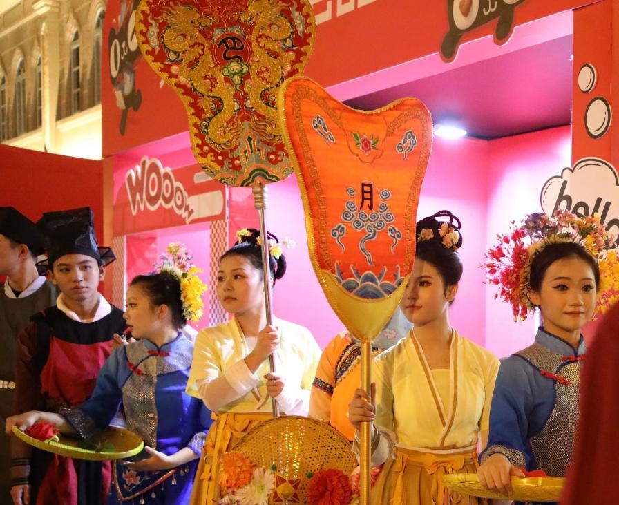 活动现场,仿宋万国商船“停泊”于刺桐大港,经市舶司报关后,宋代提举和南外宗正司率仪仗队迎宾,再现“万国商送番货”的盛况,以千年古礼为中山南路开市拉开序幕。