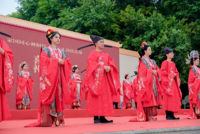 华章启新篇,古礼续良缘。启动仪式后,一场庄重典雅、韵味悠长的宋制集体婚礼将活动推向高潮。