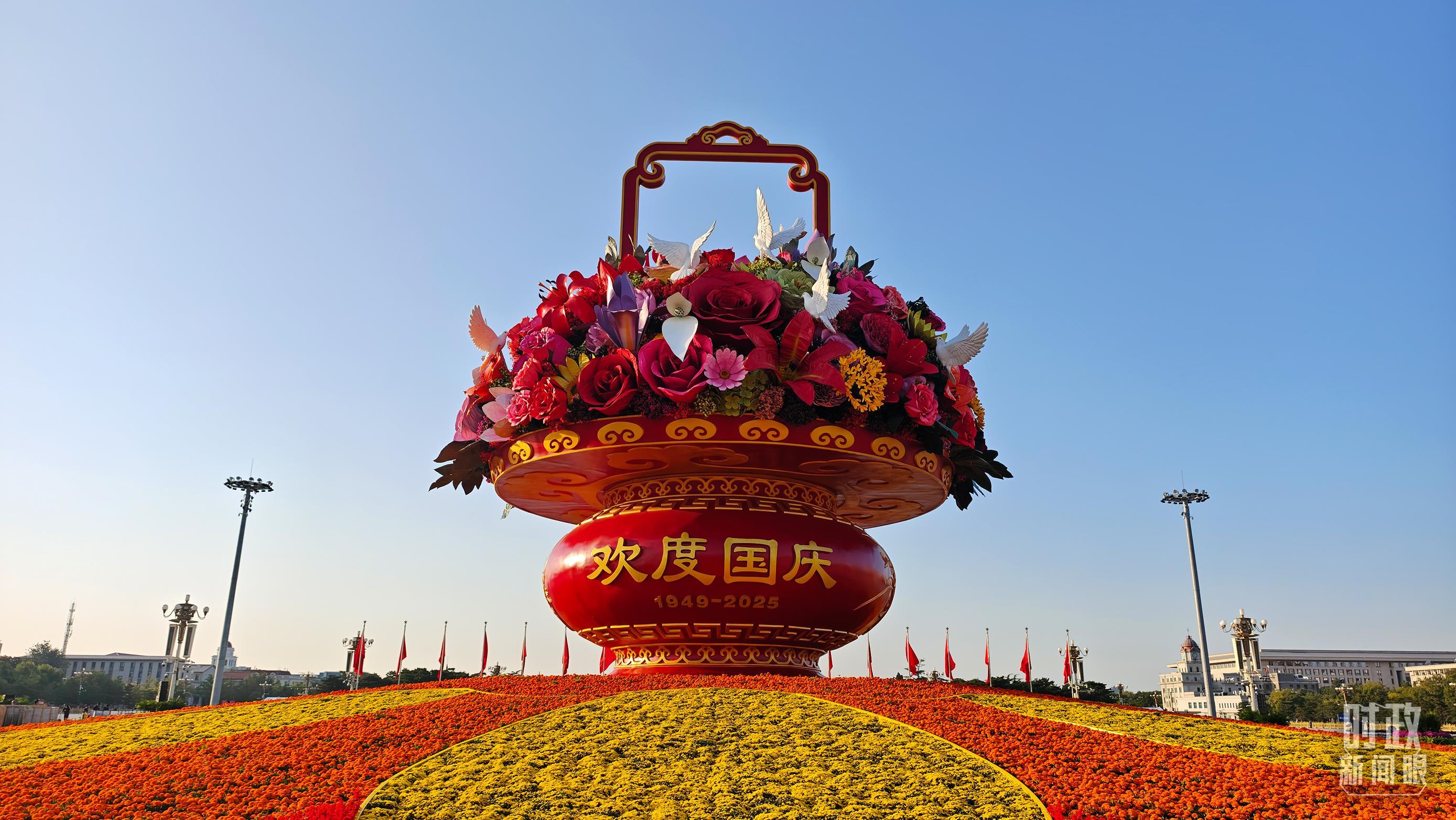 △天安门广场上的大花篮。(总台央视记者韩锐拍摄)