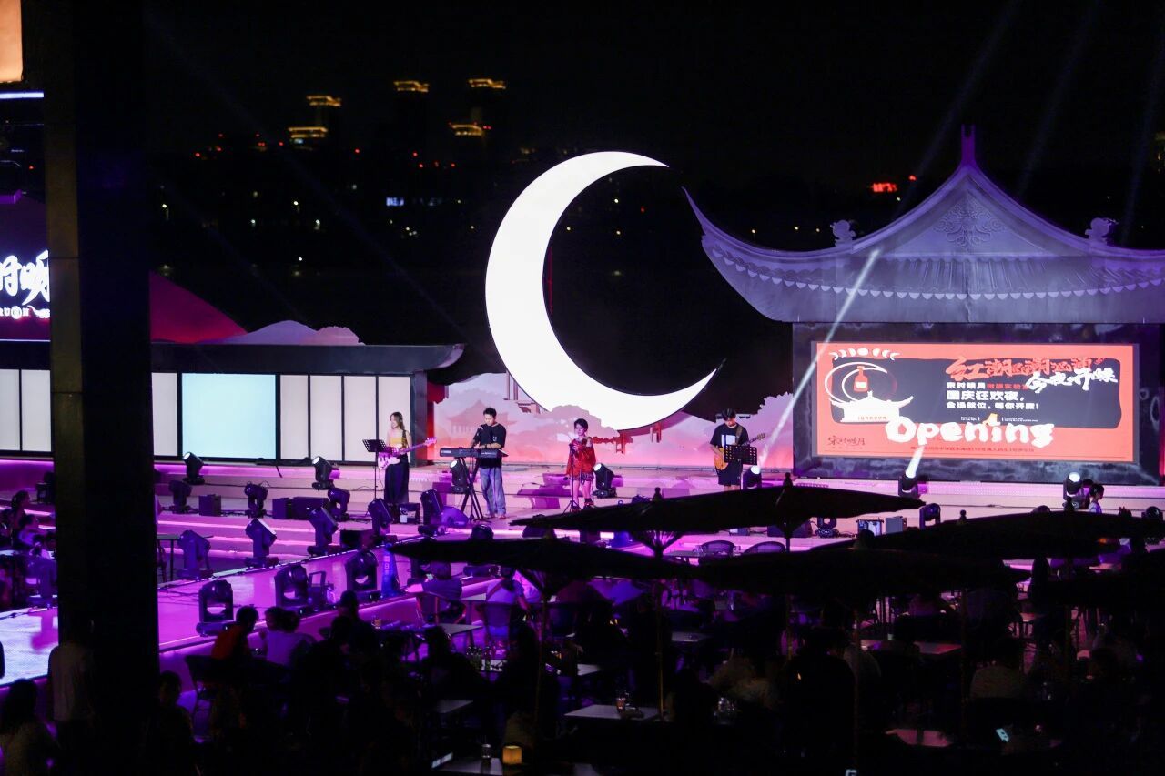 泉州网10月3日讯(通讯员陈庚嘉 王志超)夜幕降临,蟳埔渔人码头3号平台悄然变身——粉紫色系将氛围瞬间拉满,一轮弯月与宋式飞檐勾勒出千年风雅,T型舞台歌曲不断,复古油纸伞下,择一席而坐,沉浸宋韵氛围,邂逅渔港浪漫。咸湿海风裹挟着酒香与歌声,仿佛一秒穿越回《梦华录》的烟火人间。