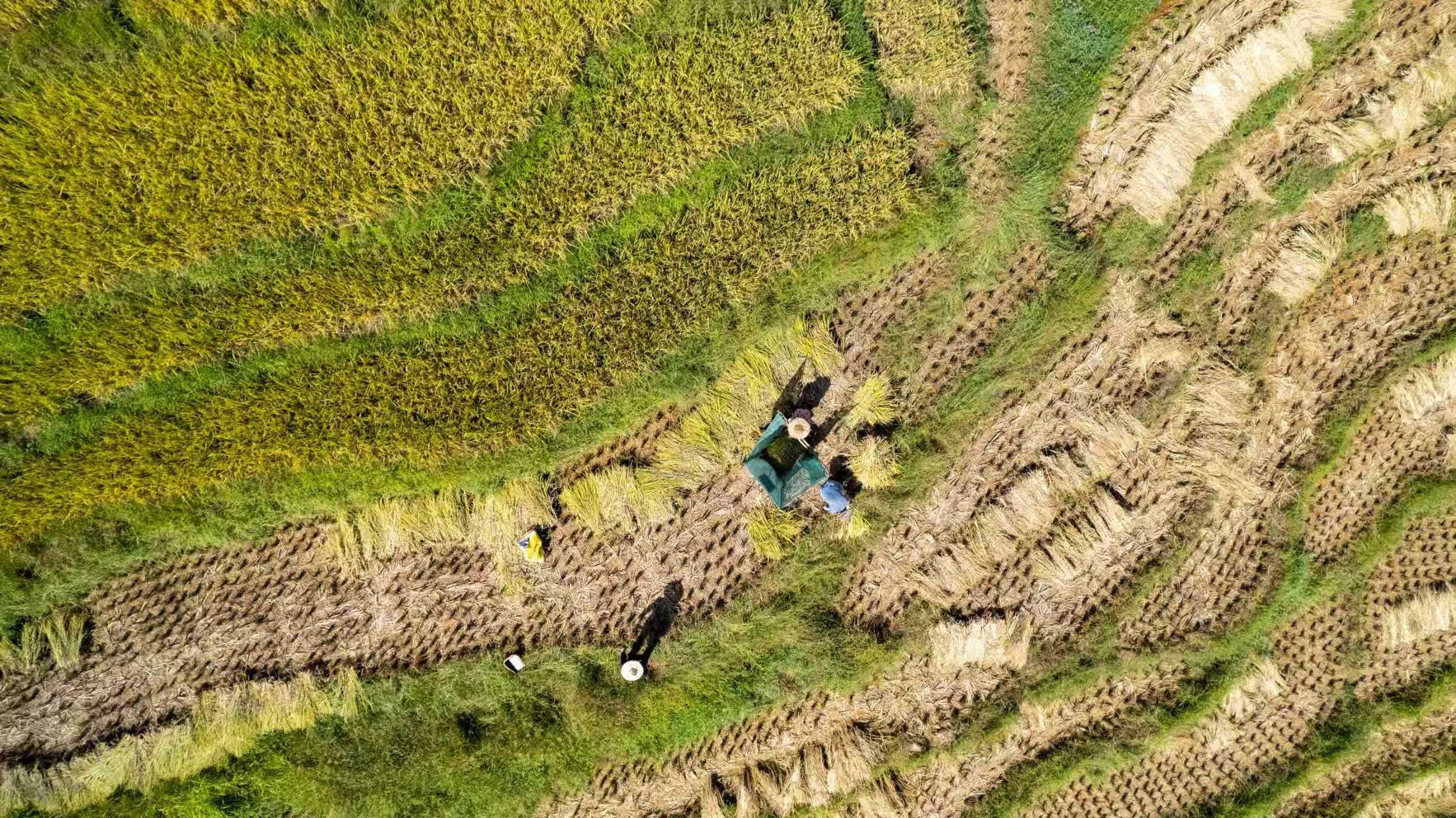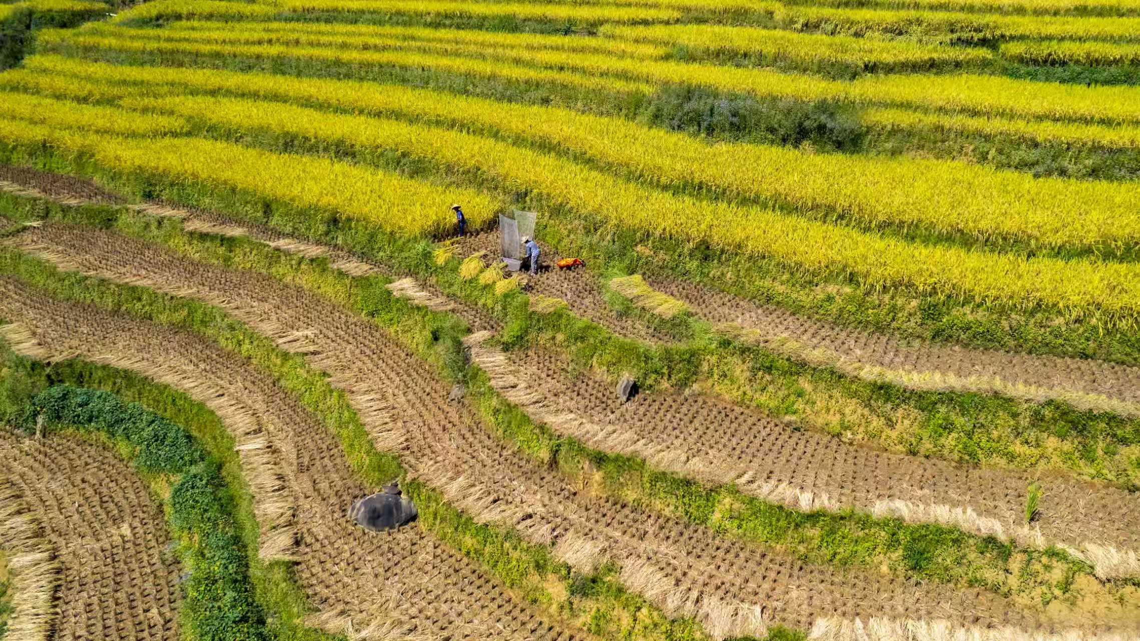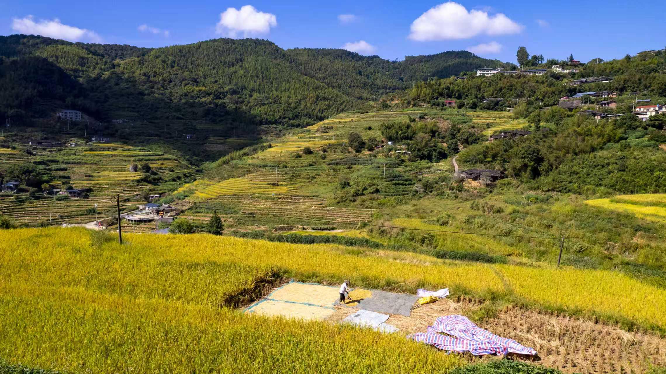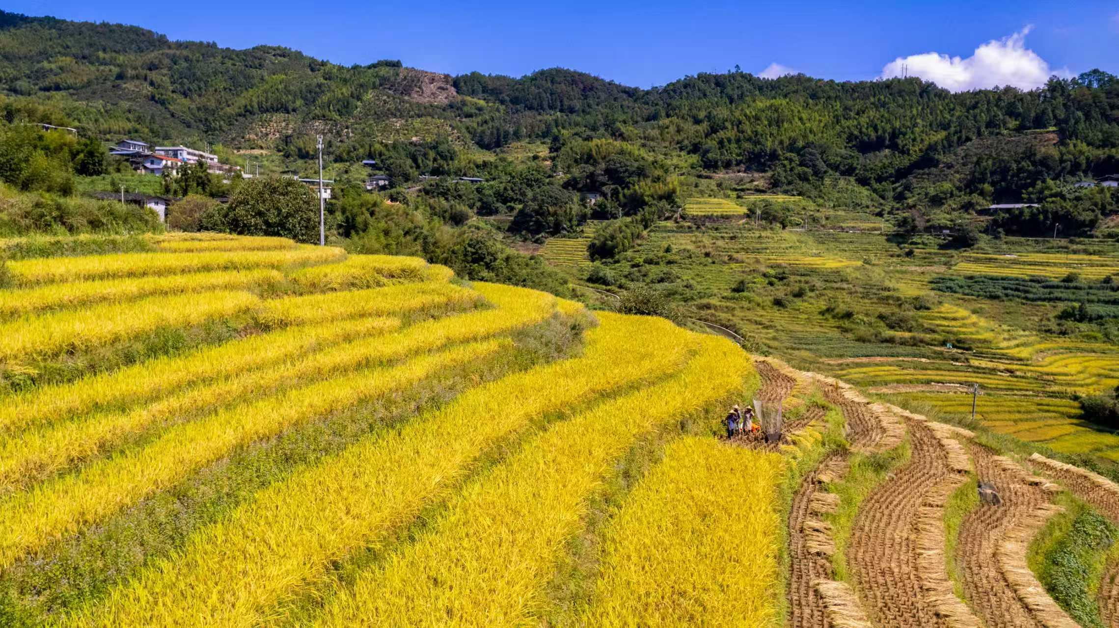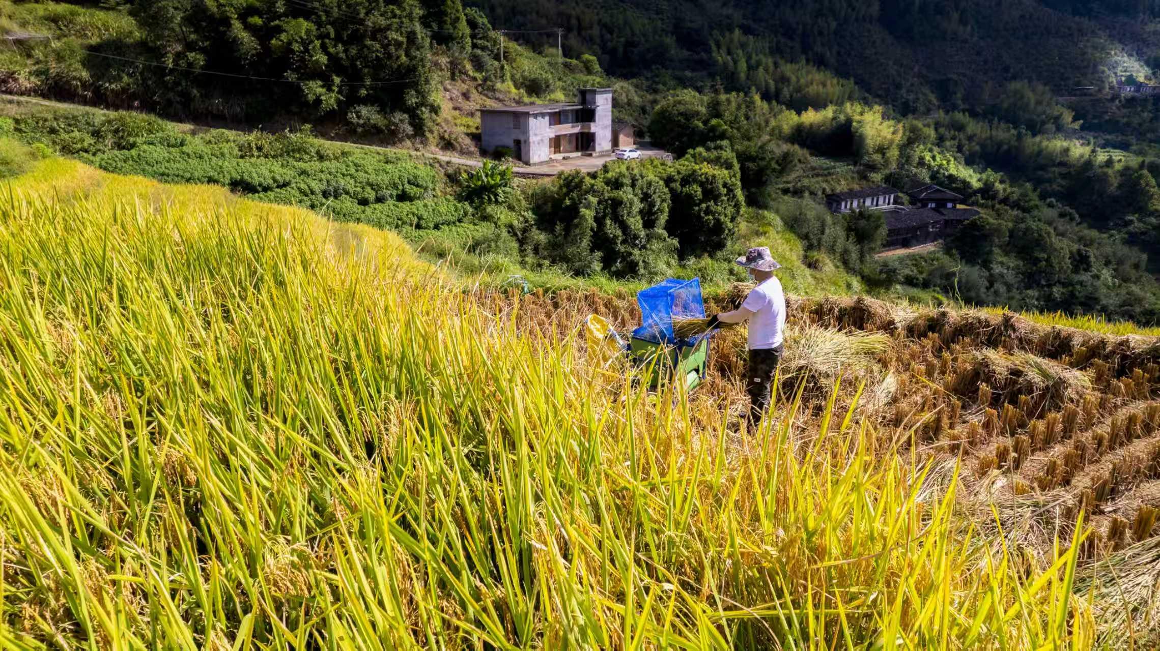 近年来,当地通过完善灌溉设施、落实农业补贴、申报种粮大户补贴,减轻农户成本,保障粮食稳产增产。同时,依托有机水稻资源推进农旅融合,让村民守着梯田增收,让丰收美景年复一年延续。目前,当地村民趁着晴好天气抢收抢晒,确保水稻颗粒归仓。