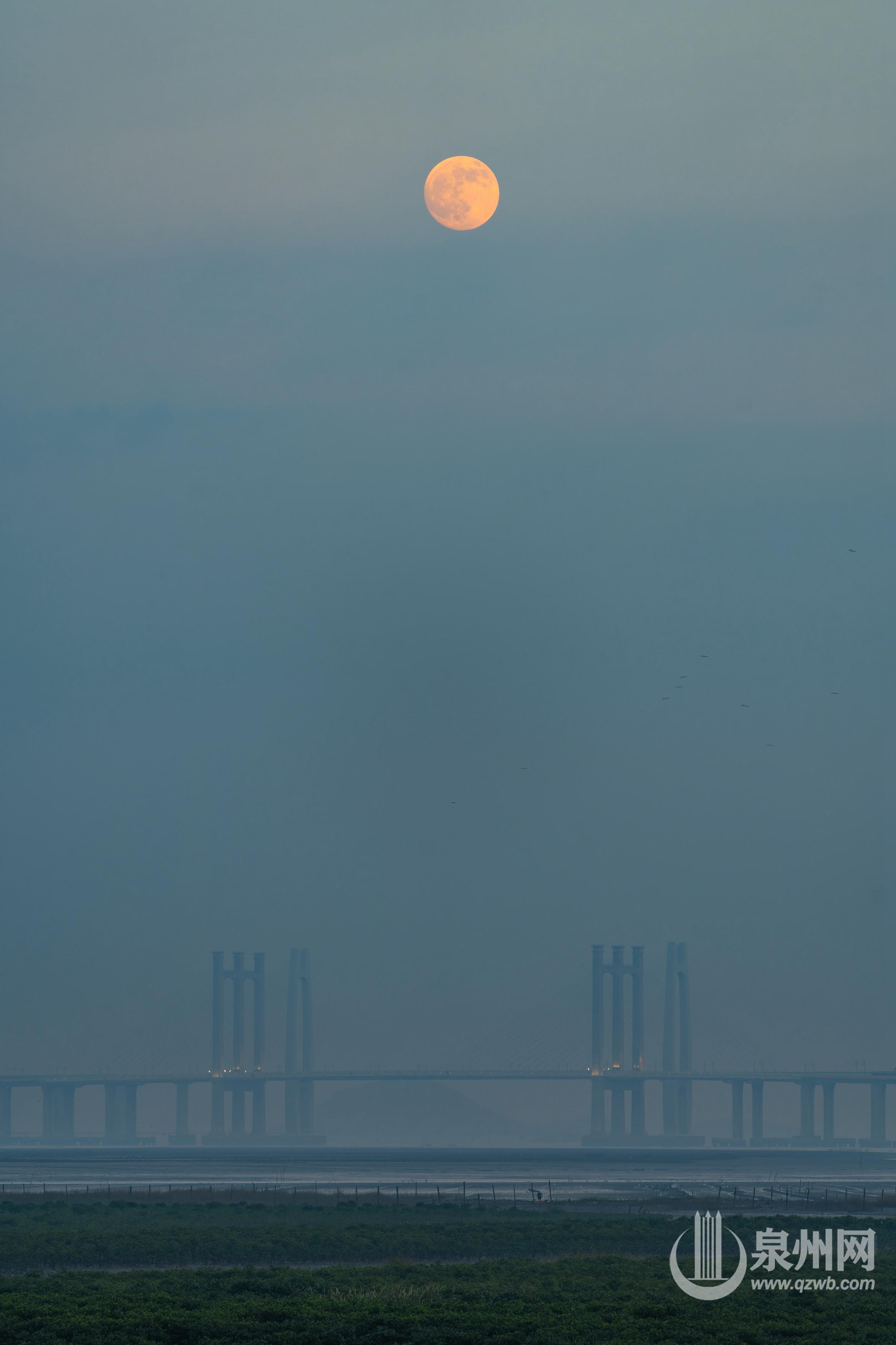 10月6日,中秋佳节。受天气影响,原本预计17时8分左右可以从泉州湾海平面露头的圆月,直到17时31分左右才隐约现身天边。这时,月亮已经离开地平线有一定高度角,在视觉上比泉州湾跨海大桥高出许多,让守候在沿海大通道拍摄月亮的记者和摄影爱好者直呼可惜。(融媒体记者陈起拓 摄)