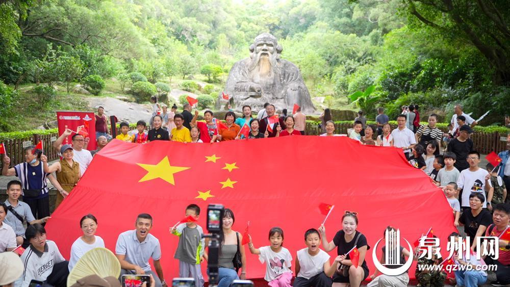 国庆当天,泉州清源山老君岩广场举办庆祝中华人民共和国成立76周年专场活动,市民游客争相留影。(彭燕珍 肖培滨 摄)