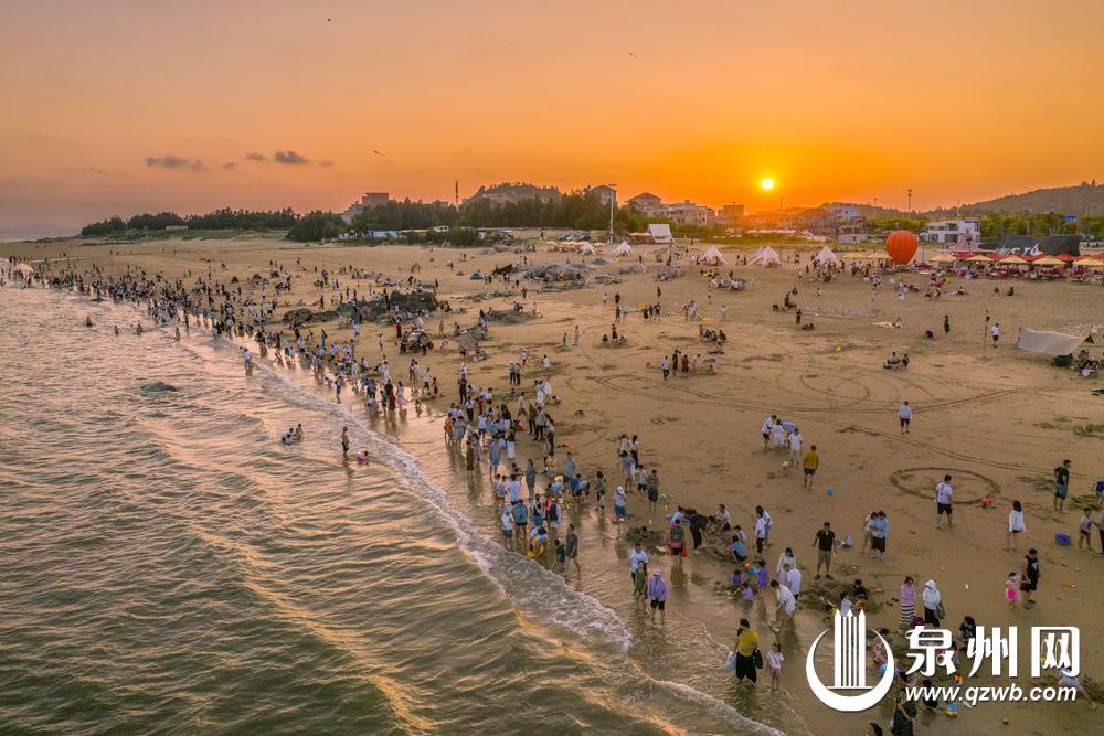 国庆假期,暖阳眷顾着泉州的金滩碧海。在泉州台商投资区玉沙湾,游客们携家带口,踏沙逐浪,欢笑声与海风交织成假日最美的乐章。 (陈起拓 摄)