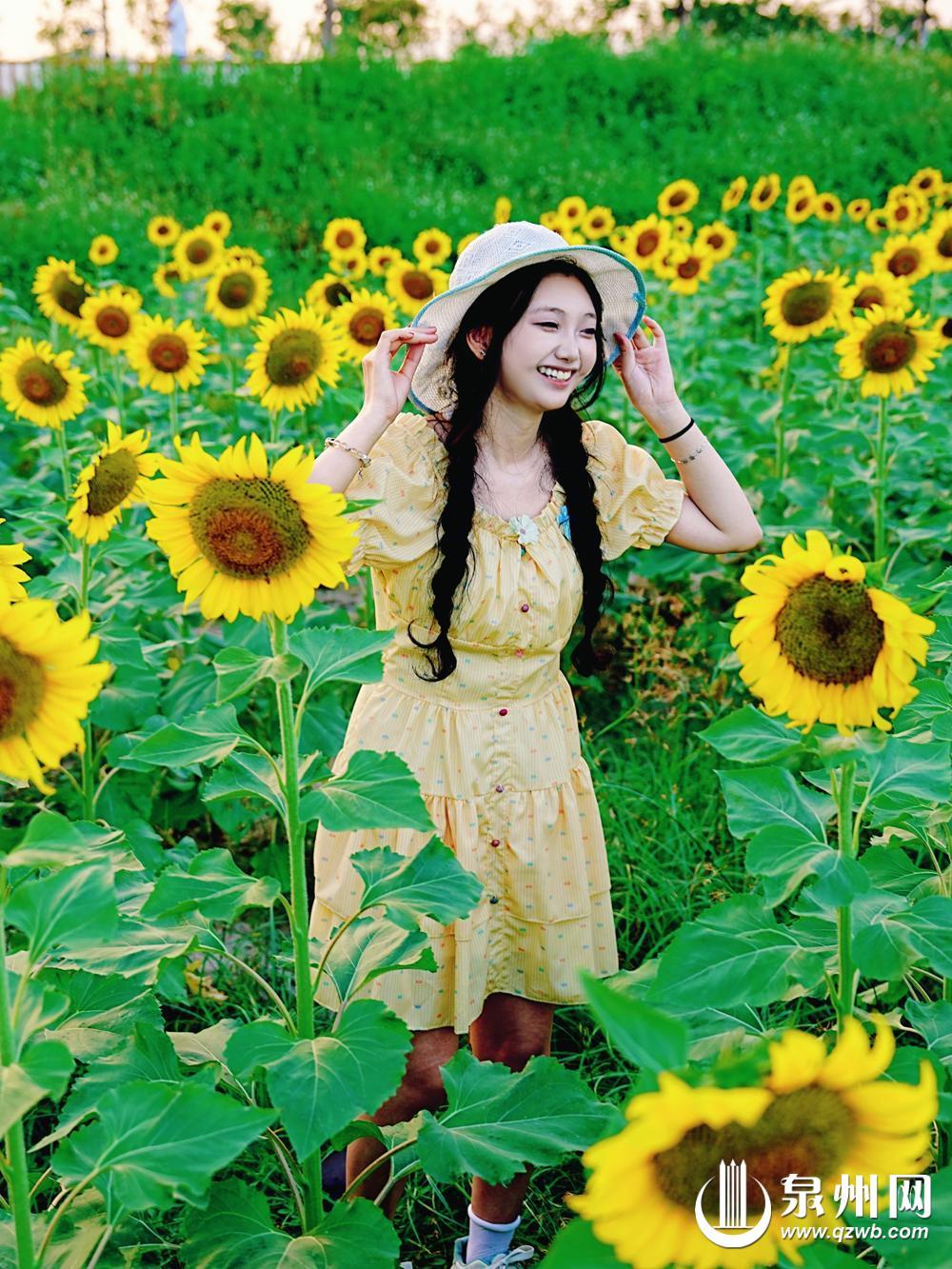 快看!就在晋江安海镇曾埭村,已经藏不住啦——秋风像个调皮的小画家,偷偷给25亩向日葵“刷”上了亮闪闪的金漆,田野里的小太阳们全都仰着圆滚滚的花盘,朝阳光使劲“笑”,明黄的花瓣跟着风轻轻晃脑袋;风一吹,金色花浪“哗啦啦”叠涌过来,瞬间变成了会动的田园油画,也太绝了吧!