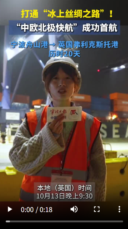 当地时间13日21时30分(北京时间14日4时30分)许,经过20天航行,自宁波舟山港启航的“伊斯坦布尔桥”轮在穿越北极圈后,抵达英国弗利克斯托港。这条全新的中欧北极集装箱快航航线(下称“中欧北极快航”)成功首航,意味着“冰上丝绸之路”就此打通。