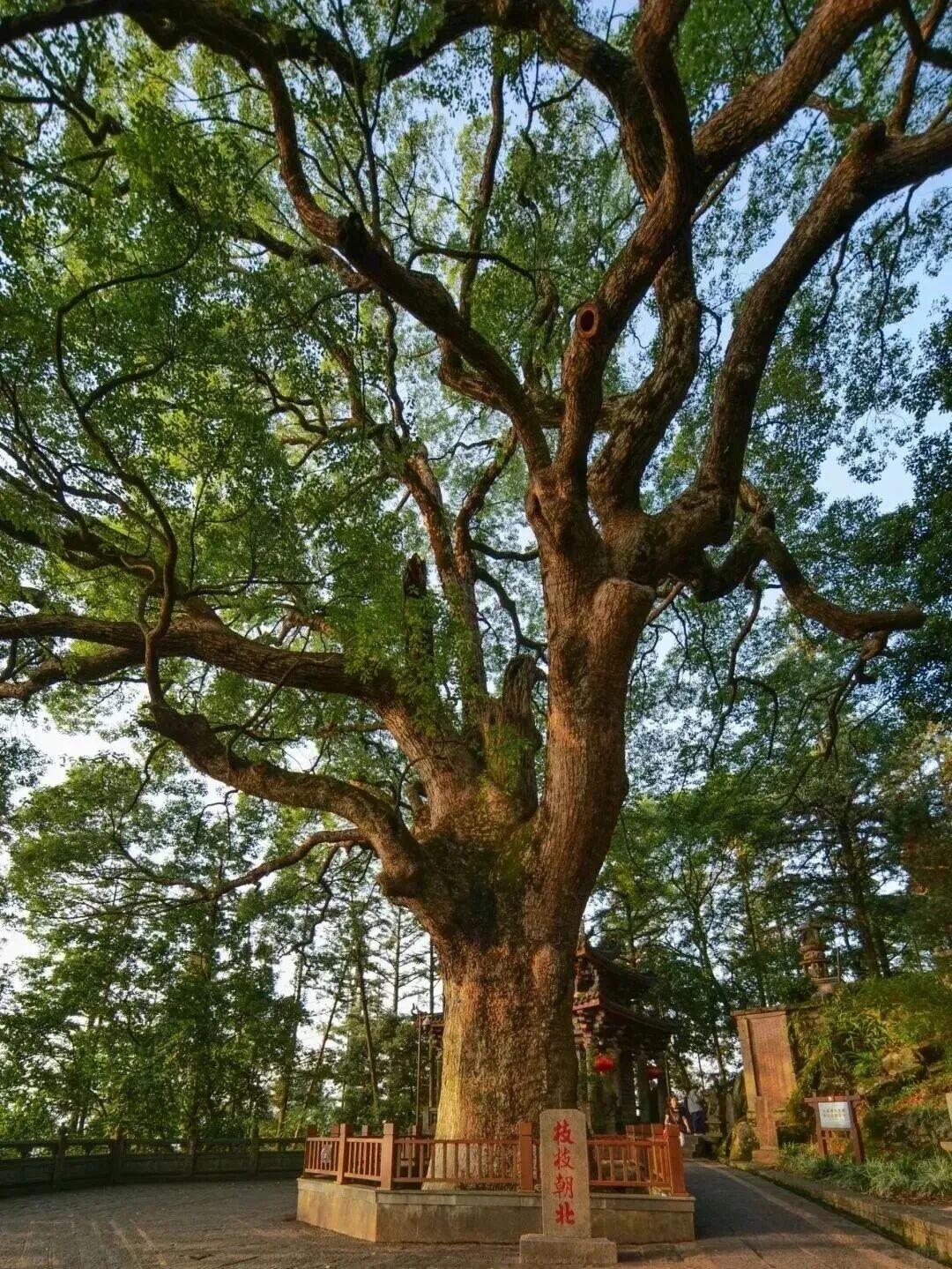 古樟高33.3米,围长6.9米,如沉默的巨人,所有枝丫都朝北方伸展,仿佛诉说着一个千年不改的约定。