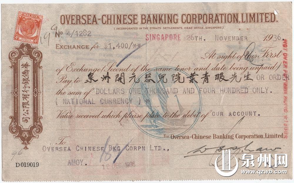 叶青眼接收华侨汇款,支持开元慈儿院运转。