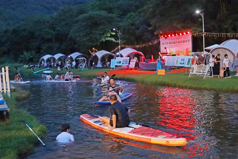 走进乡村,另一种惬意体验正在展开。在河市镇新告村的房车露营地,星空下的帐篷亮起暖灯,旁边的舞台上,女团唱跳、乐器串烧、乐队演唱、DJ喊麦等精彩节目,结合户外烧烤、聚会等多元体验,打造出沉浸式节日星空露营音乐氛围,让游客享受绿水青山的休闲时光。