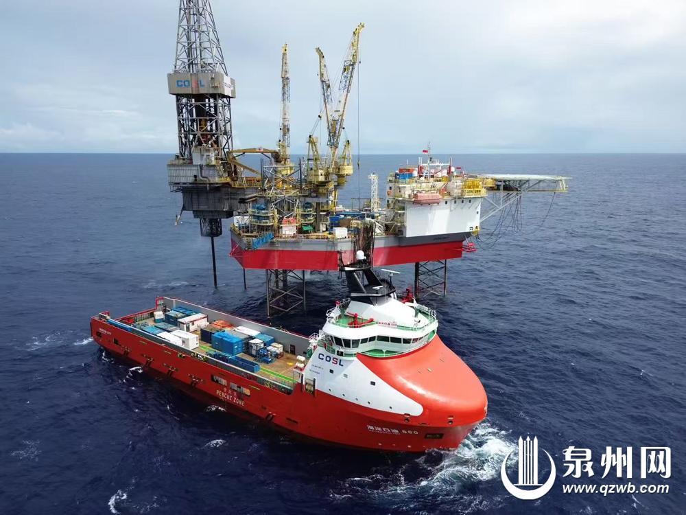 本月初,中国海油“海洋石油660”船向海上钻井作业平台运输所需物资,包括蓝海博达生产的高端油化学品等。(李政伯 摄)