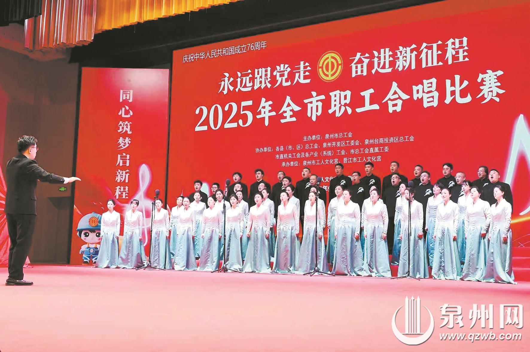 泉州网10月20日讯(融媒体记者陈森森 通讯员俞英 文/图)近日,由泉州市总工会主办的“永远跟党走 奋进新征程”2025年全市职工合唱比赛举行,19支代表队参加。泉州市教育系统代表队由市教育局、高校、中小学、幼儿园的教育工作者联合组建,大家以饱满的热情登台献唱,展现出良好精神风貌。