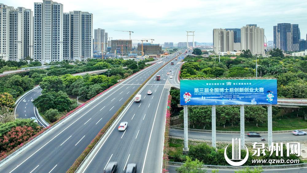 第三届全国博士后创新创业大赛总决赛将于本周日在泉州晋江盛大启幕。为营造热情迎赛的浓厚氛围,大赛执委会办公室精心布局、多点发力,在泉州中心城区的天桥、交通隧道、主要路口、动车站等重要点位设置宣传标语;公交车化身流动的宣传窗,承载大赛讯息传遍大街小巷。同时,在户外大型LED宣传屏滚动播放大赛宣传视频、海报,以饱满热情和崭新面貌迎接这场高水平赛事。 (融媒体记者吴宗宝 林劲峰 通讯员苏艺冰 摄)