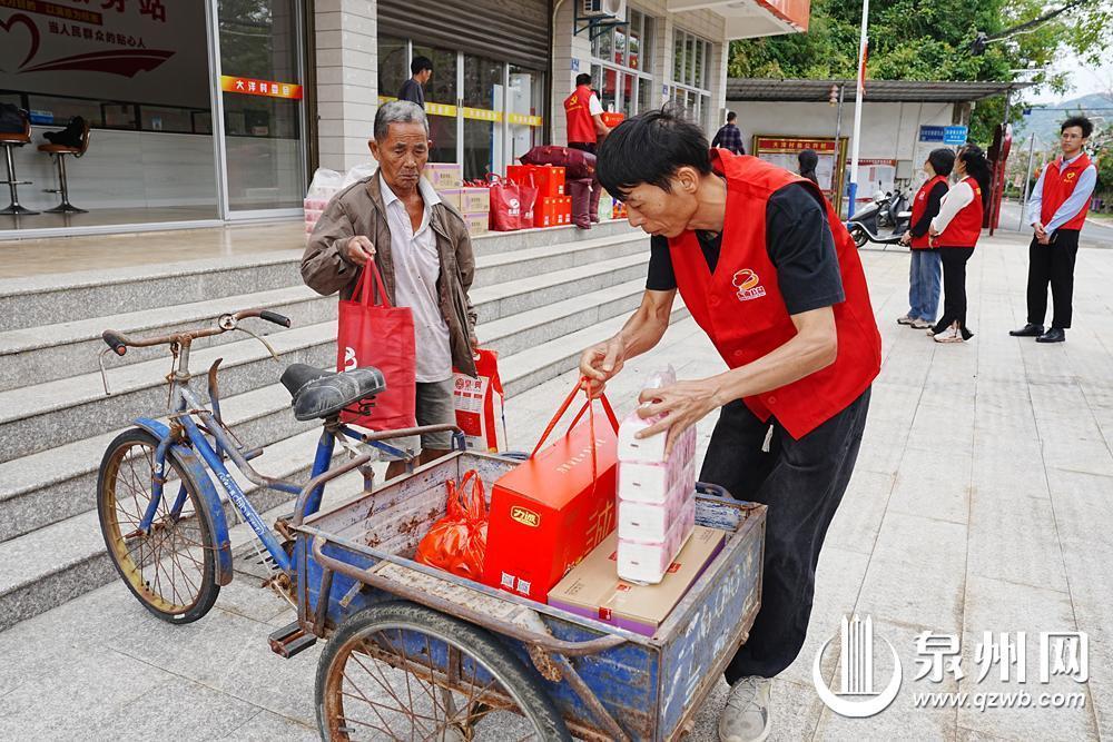 泉州网10月24日讯(融媒体记者 许钹钹 王耿华 高云 陈茗香 文/图)10月23日上午,南安洪濑镇大洋村,秋意微凉。身着红马甲的志愿者拎着米、油和棉被等物资,走向村中几位老人的住处——当天,“情暖重阳 爱在大洋”百岁老人慰问活动在这里温情举行,泉州市东南公益协会、泉州晚报社机关第三党支部携手多家爱心单位与爱心人士,走访看望了三名百岁老人和多位高龄、孤寡老人。