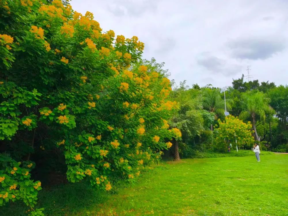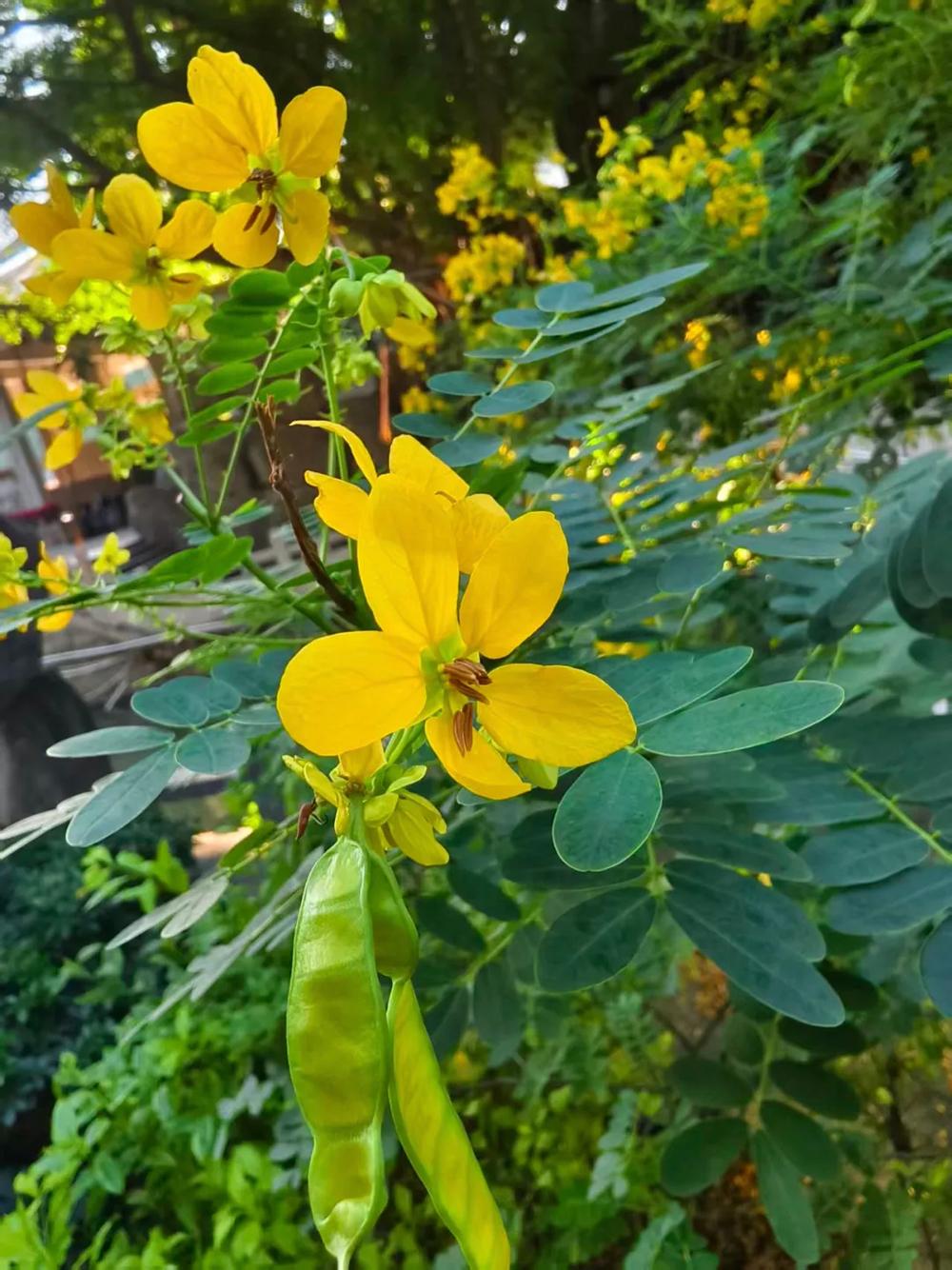 黄槐决明虽四季可开花,但秋日盛放时最是灿烂。当下至11月正是其最佳观赏期,金黄色的花海与秋日蓝天相映成趣,构成一幅绝美的自然画卷。