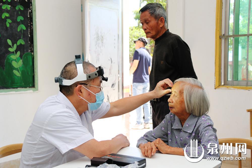 泉州医高专附属人民医院医生潘建辉一边检查,一边耐心叮嘱着患有慢性结膜炎的老人,平时要少揉眼睛,出门务农尽量避免风吹日晒。在医生引导下,村民陆续完成诊察,脸上露出安心的笑容。