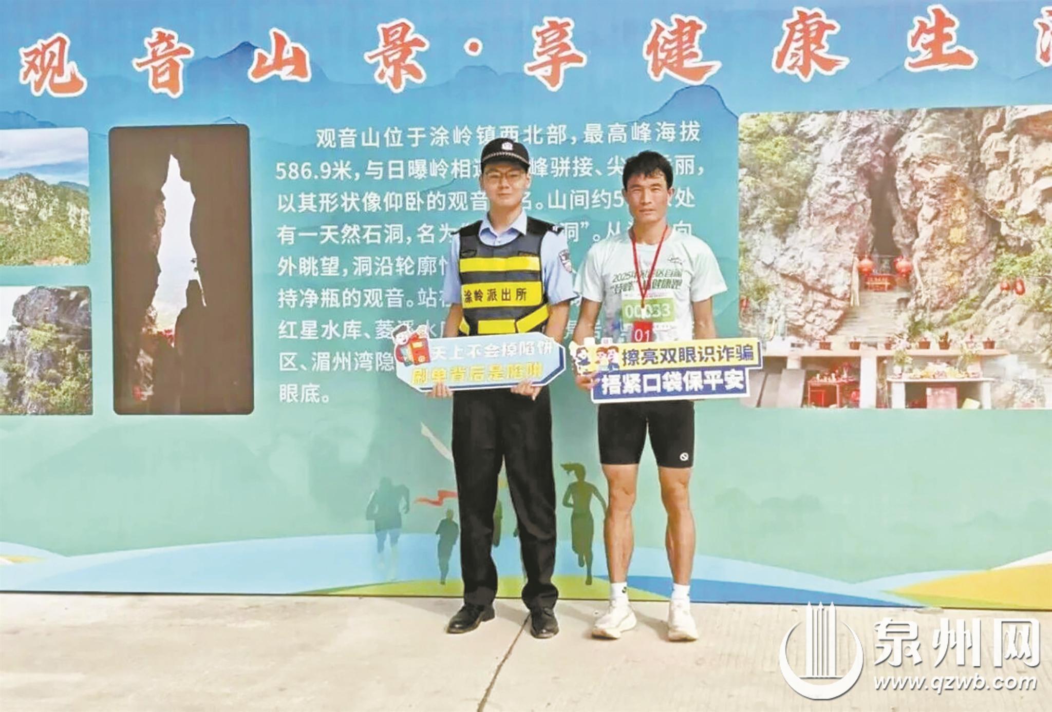 泉州网10月29日讯(融媒体记者张雯 通讯员袁春辉 文/图)近日,2025年泉港区首届“登峰”杯健康跑在涂岭镇顺利开跑。泉港公安分局涂岭派出所将反诈宣传巧妙融入火热赛事,让安全理念伴随奔跑的节奏,悄然播撒、落地生根。