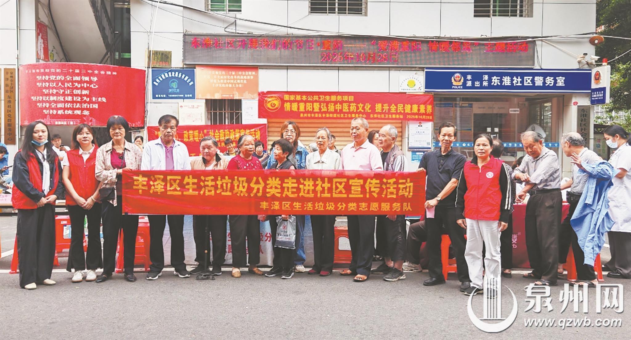泉州网10月30日讯 (融媒体记者傅恒 文/图)10月28日下午,丰泽区城管局组织生活垃圾分类志愿服务队,在丰泽街道东淮社区居委会门口开展宣传活动,以“实操互动+本土特色”的形式,推动分类习惯扎根居民生活。