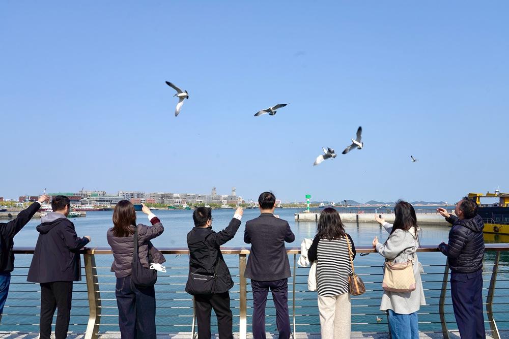 烟台融媒10月29日讯(胶东在线记者 邬勇 刘菲 摄影 金鑫)10月29日,阳光明媚,天蓝海碧。芝罘湾广场上,但见海鸥翔集,时而翩跹舞动海浪,时而与岸边的市民、游客以及来自国家级、省级媒体,全国城市网媒的总编、记者们“深情对话”,瞬间治愈人间烦忧。这是第二十一届(2025)中国城市新闻网媒联盟联席会暨百城百名网媒总编辑看烟台活动的“浪漫时刻”。