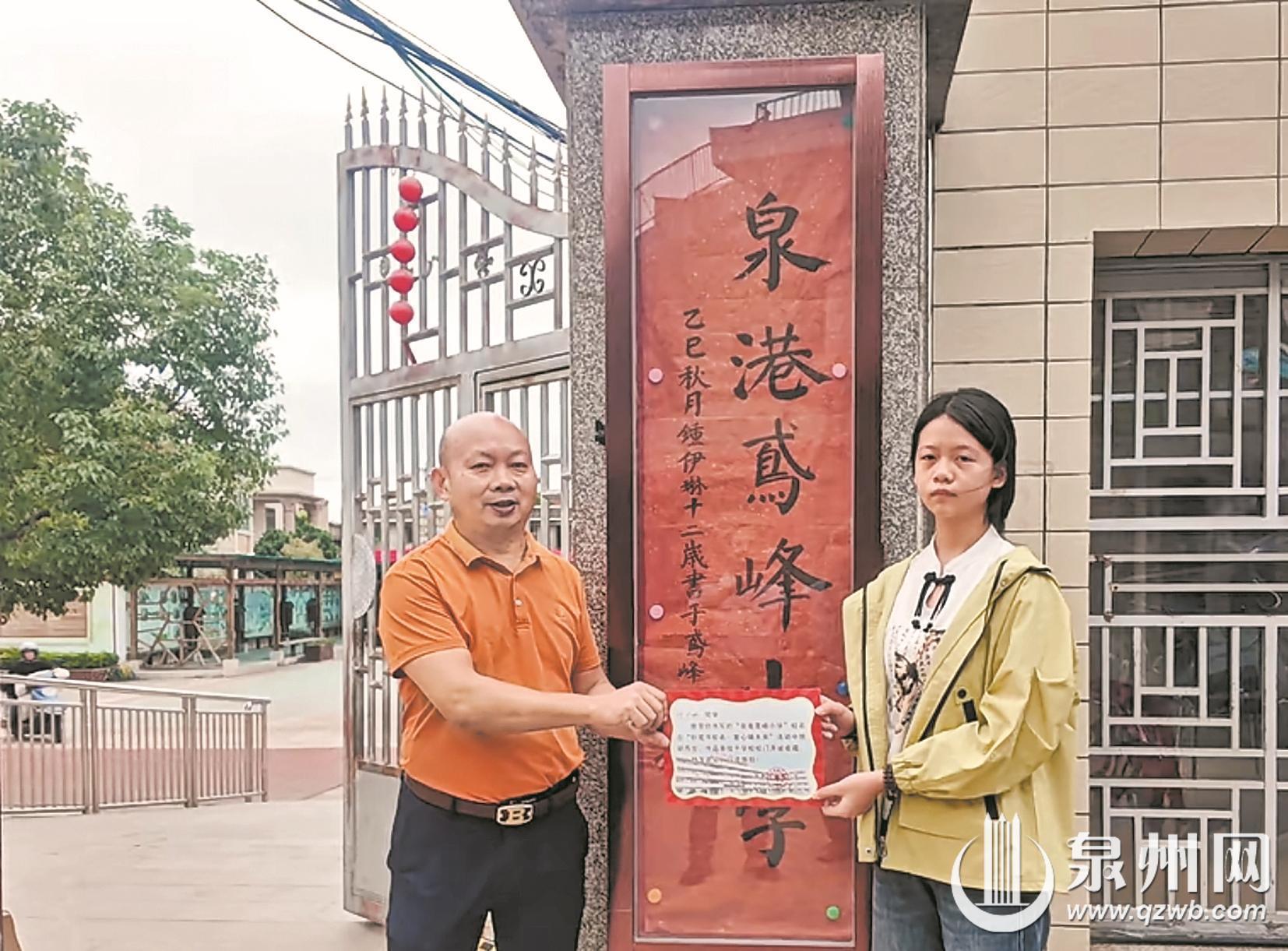 “看到自己写的校名被选用并挂在校门口,我感觉非常开心和自豪!”从朱校长手里接过收藏证书,此次“书法校名”的作者、六年级的钟伊琳脸上洋溢着灿烂的笑容。她提到,作为学校书法兴趣小组的成员,她在老师的悉心指导下,不仅书法技艺日益精进,更在书写过程中收获了自信以及对传统文化的热爱。