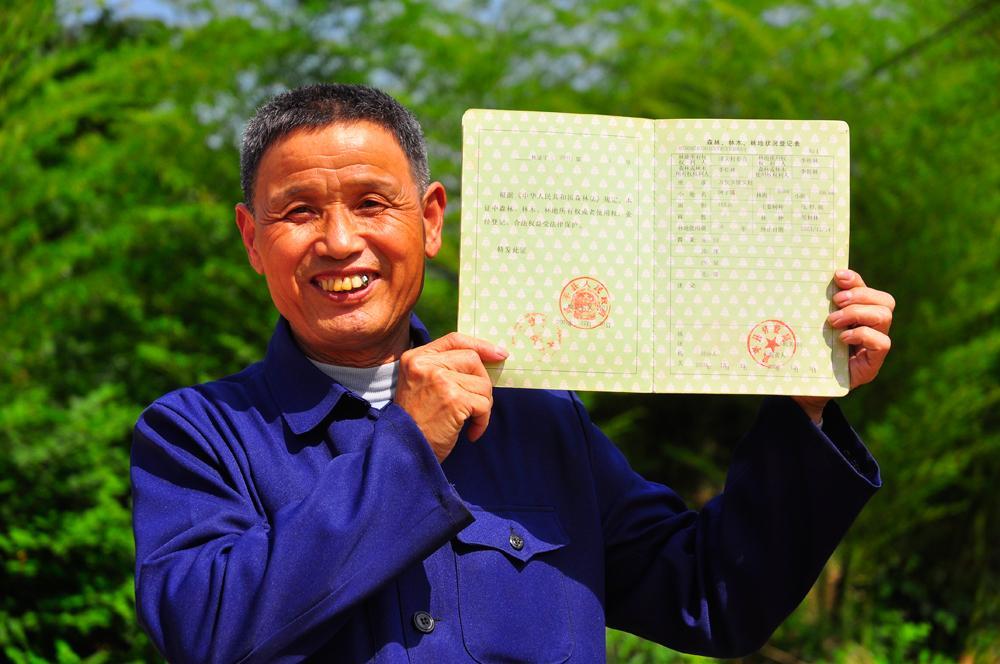2001年,捷文村村民李桂林领到了全国第一本新版的林权证。